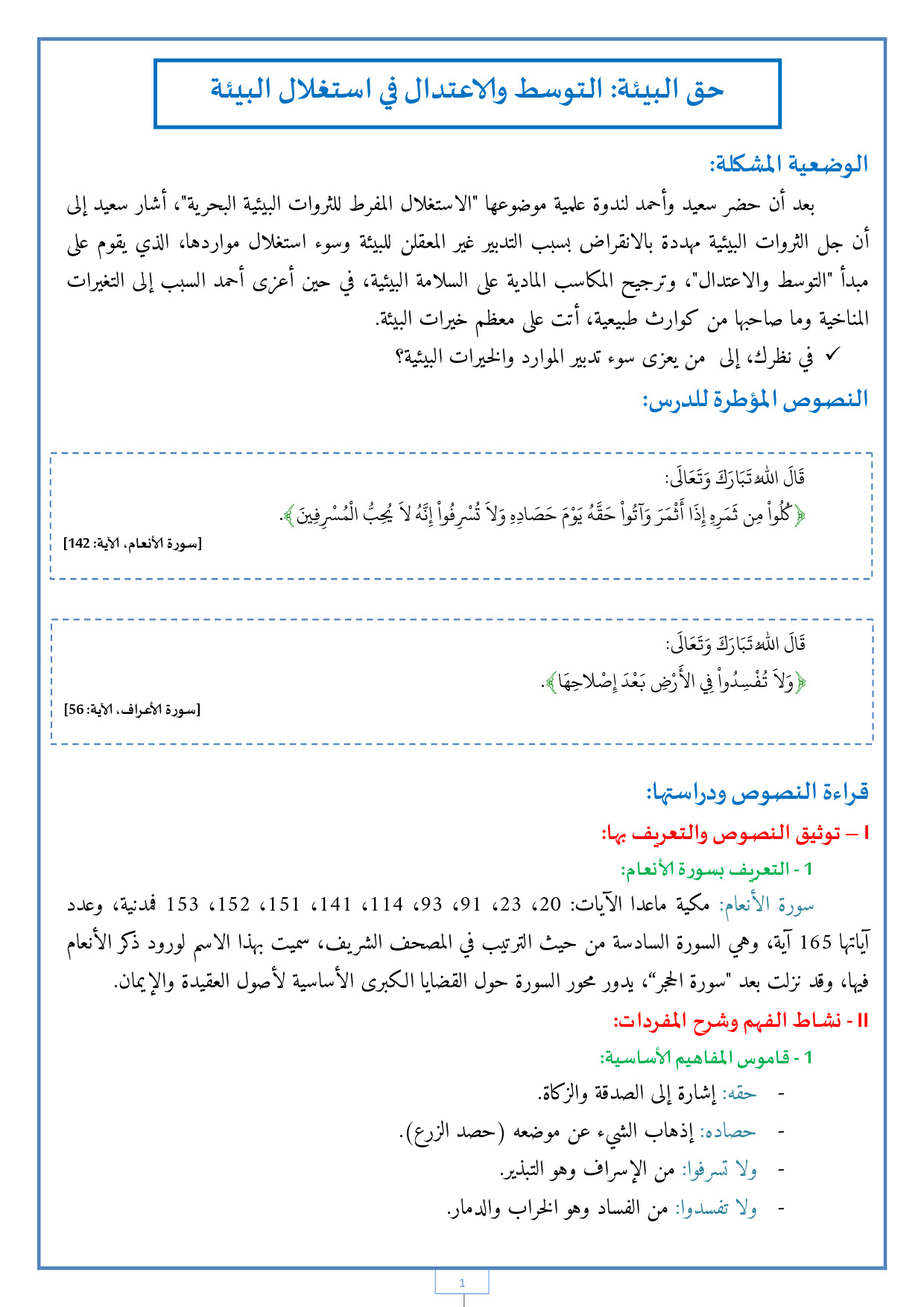 حق البيئة: التوسط والاعتدال في استغلال البيئة - الدرس