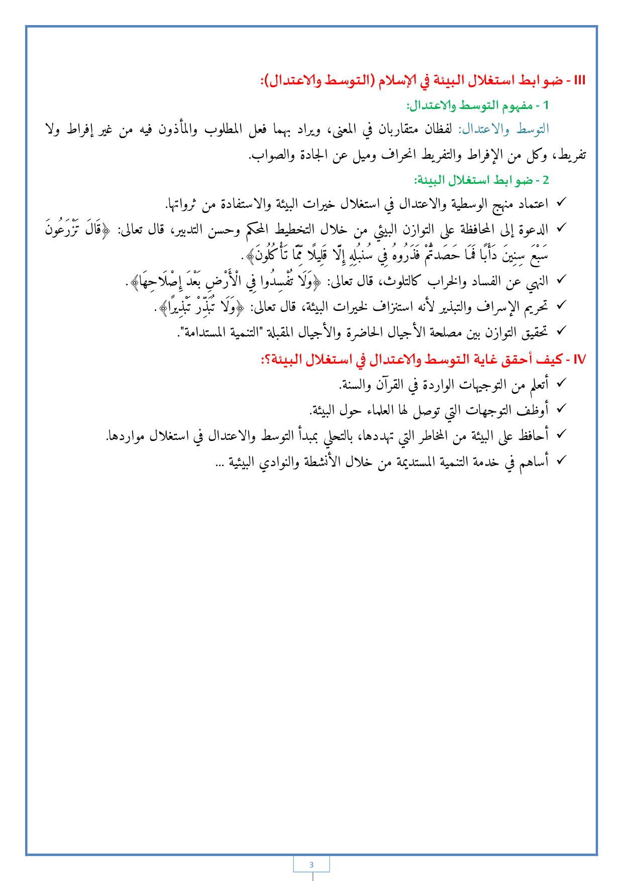 حق البيئة: التوسط والاعتدال في استغلال البيئة - الدرس