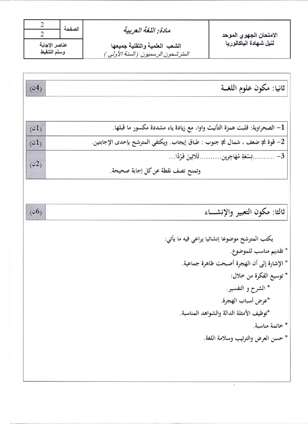 الامتحان الجهوي في اللغة العربية (د. الإستدراكية) - بني ملال خنيفرة 2017 - التصحيح