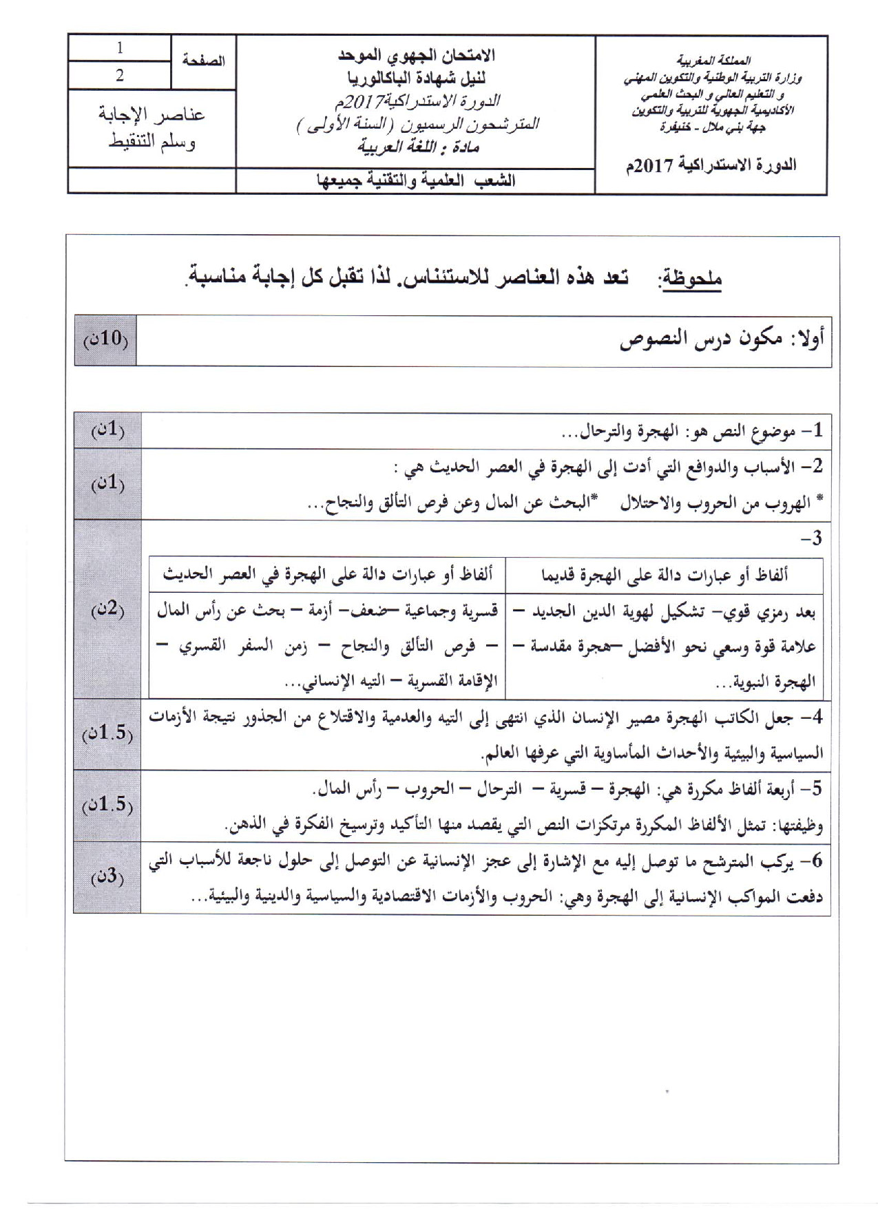 الامتحان الجهوي في اللغة العربية (د. الإستدراكية) - بني ملال خنيفرة 2017 - التصحيح