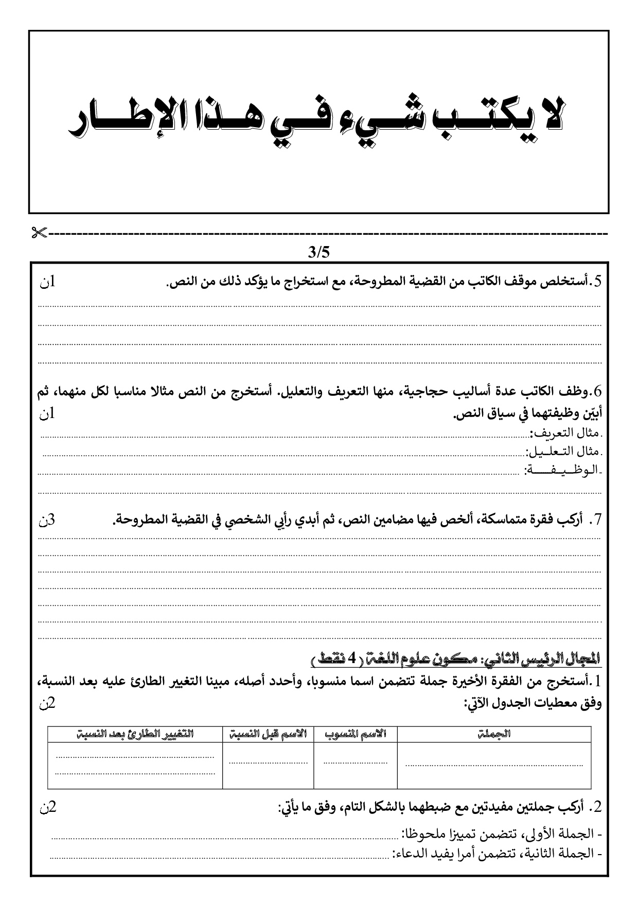 اللغة العربية: الأولى باكالوريا علوم رياضية