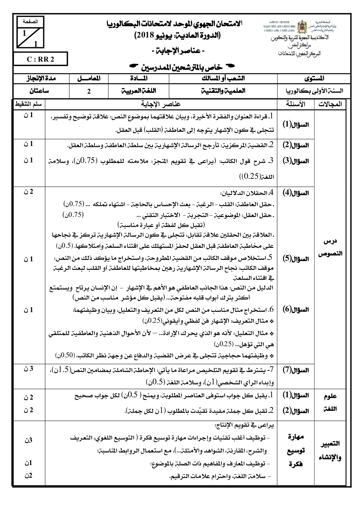 الامتحان الجهوي في اللغة العربية (د. العادية) - مراكش آسفي 2018 - التصحيح