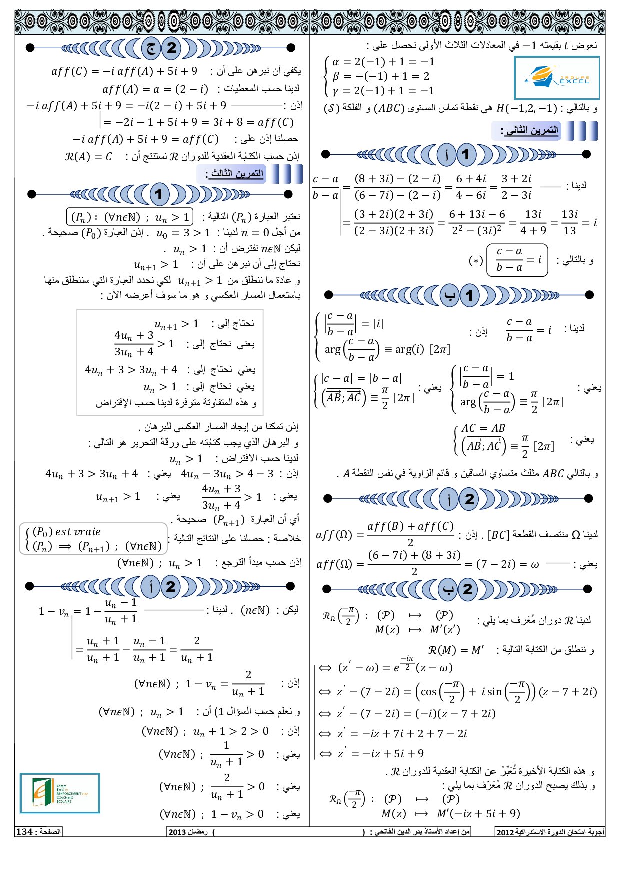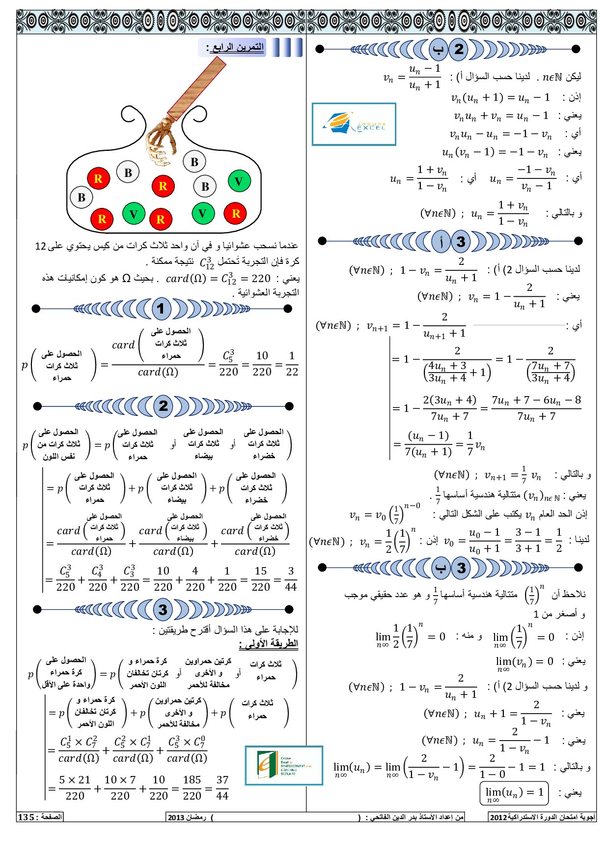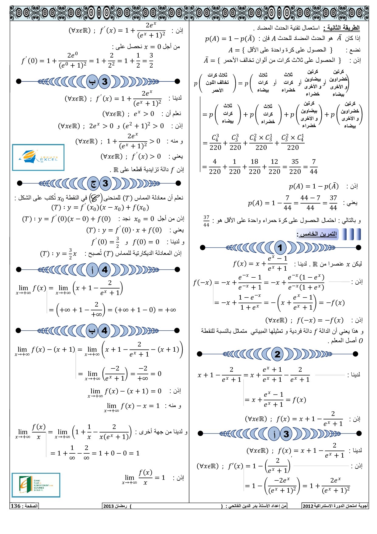 الرياضيات للشعب العلمية والتكنولوجية 2012 الدورة الإستدراكية - التصحيح