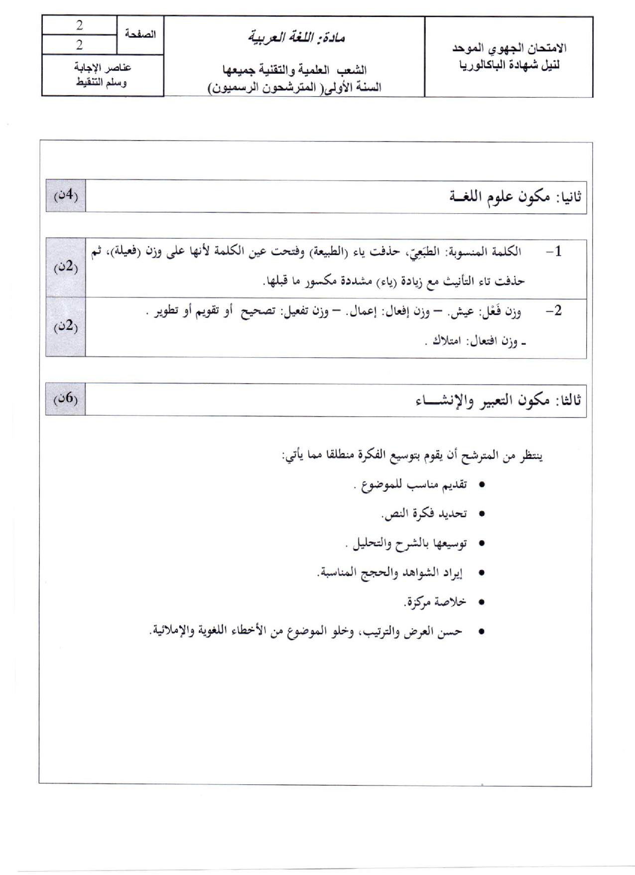 اللغة العربية: الأولى باكالوريا علوم رياضية