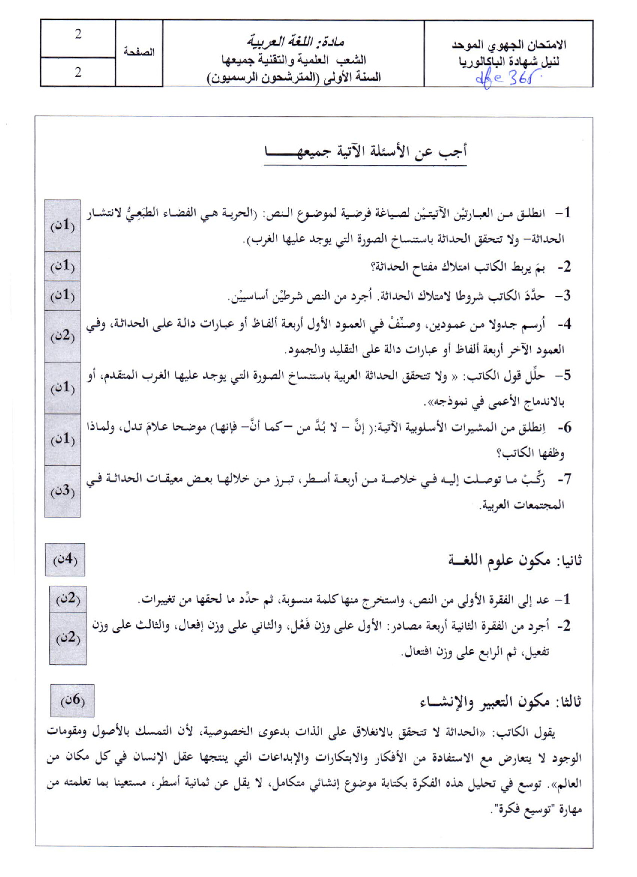 الامتحان الجهوي في اللغة العربية (د. العادية) - بني ملال خنيفرة 2018 - التصحيح