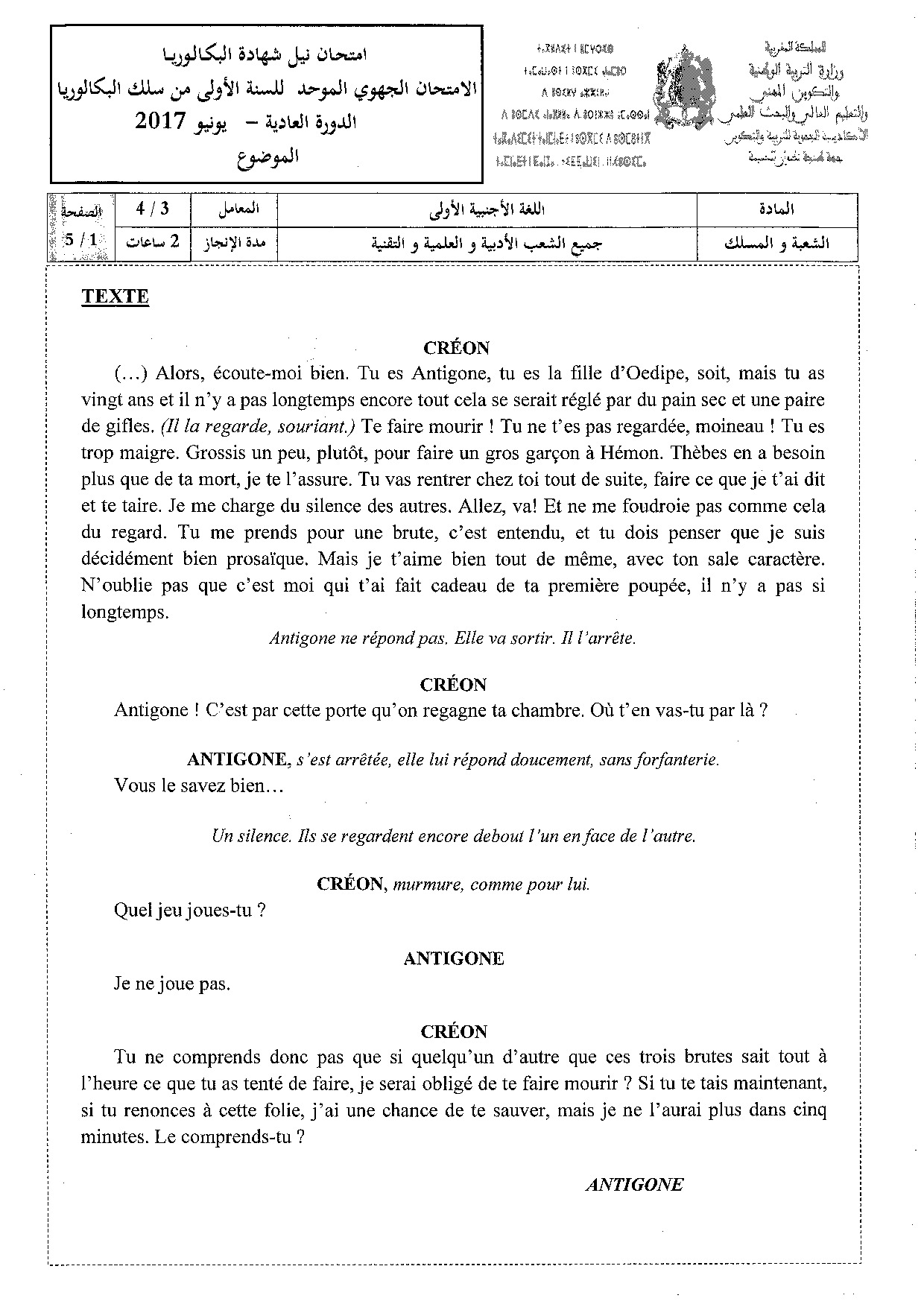 Examen régional Français (Session Normale) - Tanger-Tétouan-Al Hoceïma 2017 - Sujet