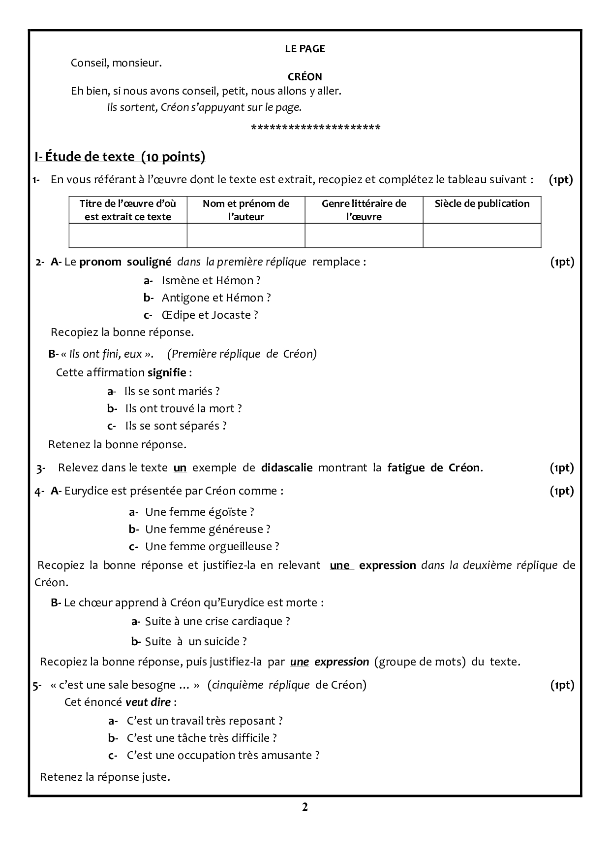Examen régional Français (Session Rattrapage) - Marrakech-Safi 2017 - Sujet