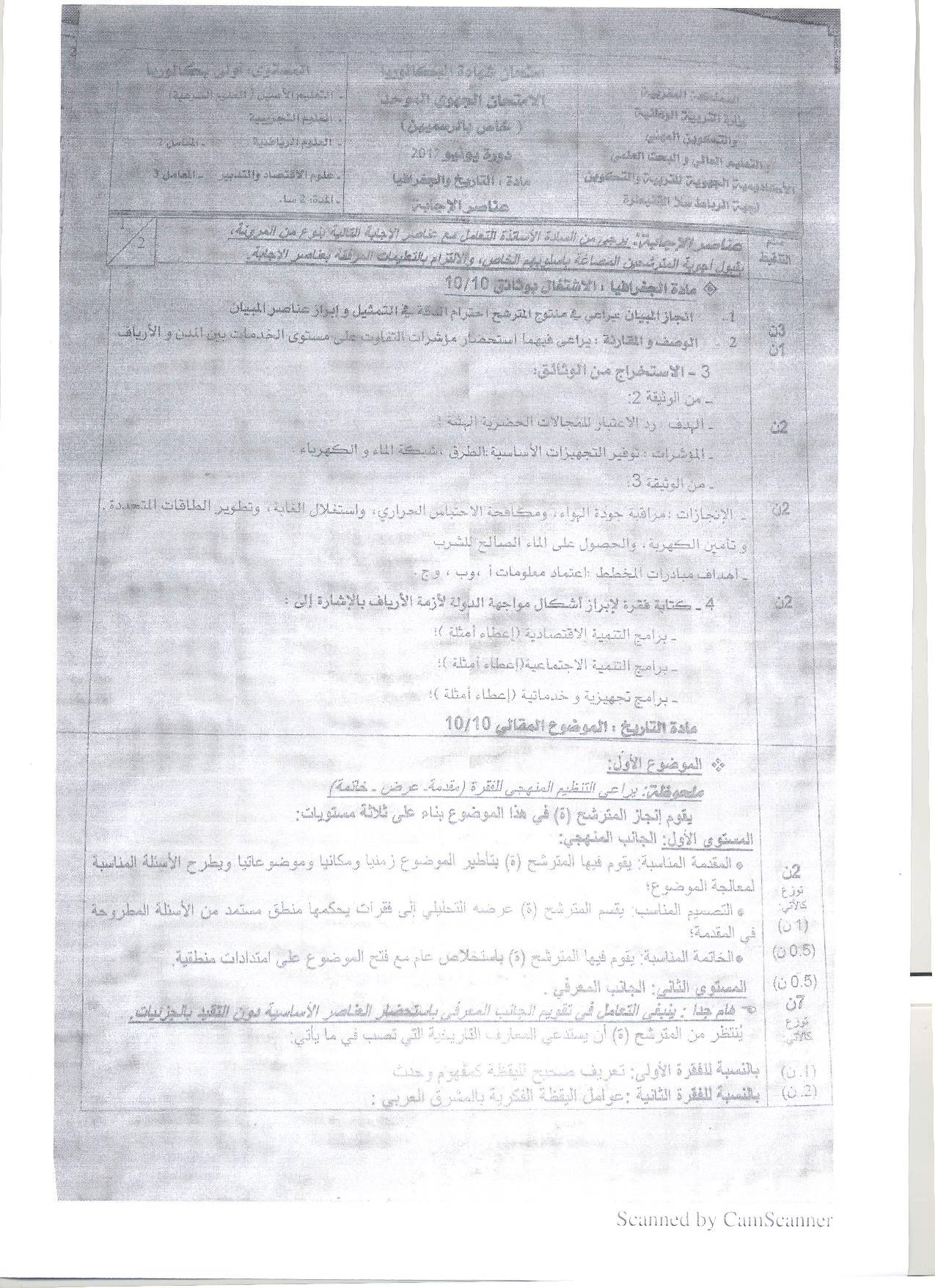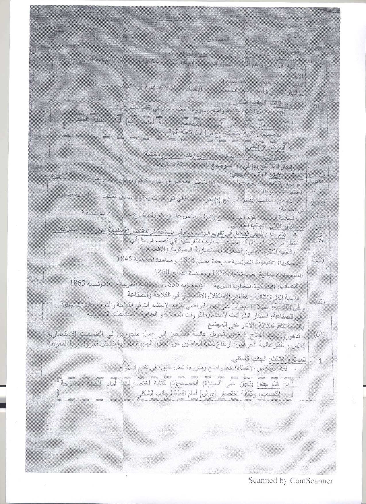 الامتحان الجهوي في التاريخ والجغرافية (د. العادية) - الرباط سلا القنيطرة 2017 - التصحيح