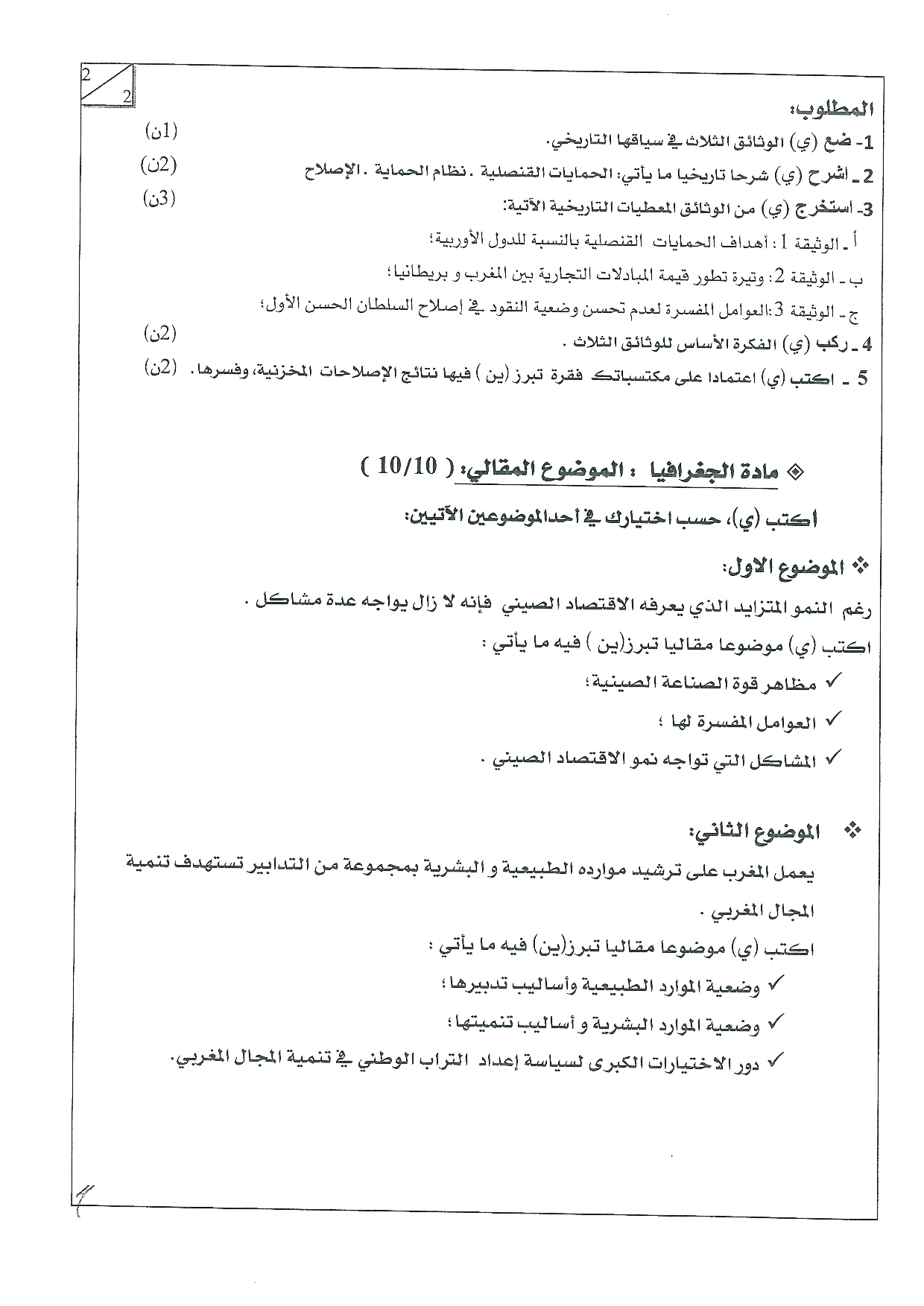 الامتحان الجهوي في التاريخ والجغرافية (د. العادية) - الرباط سلا القنيطرة 2018 - الموضوع
