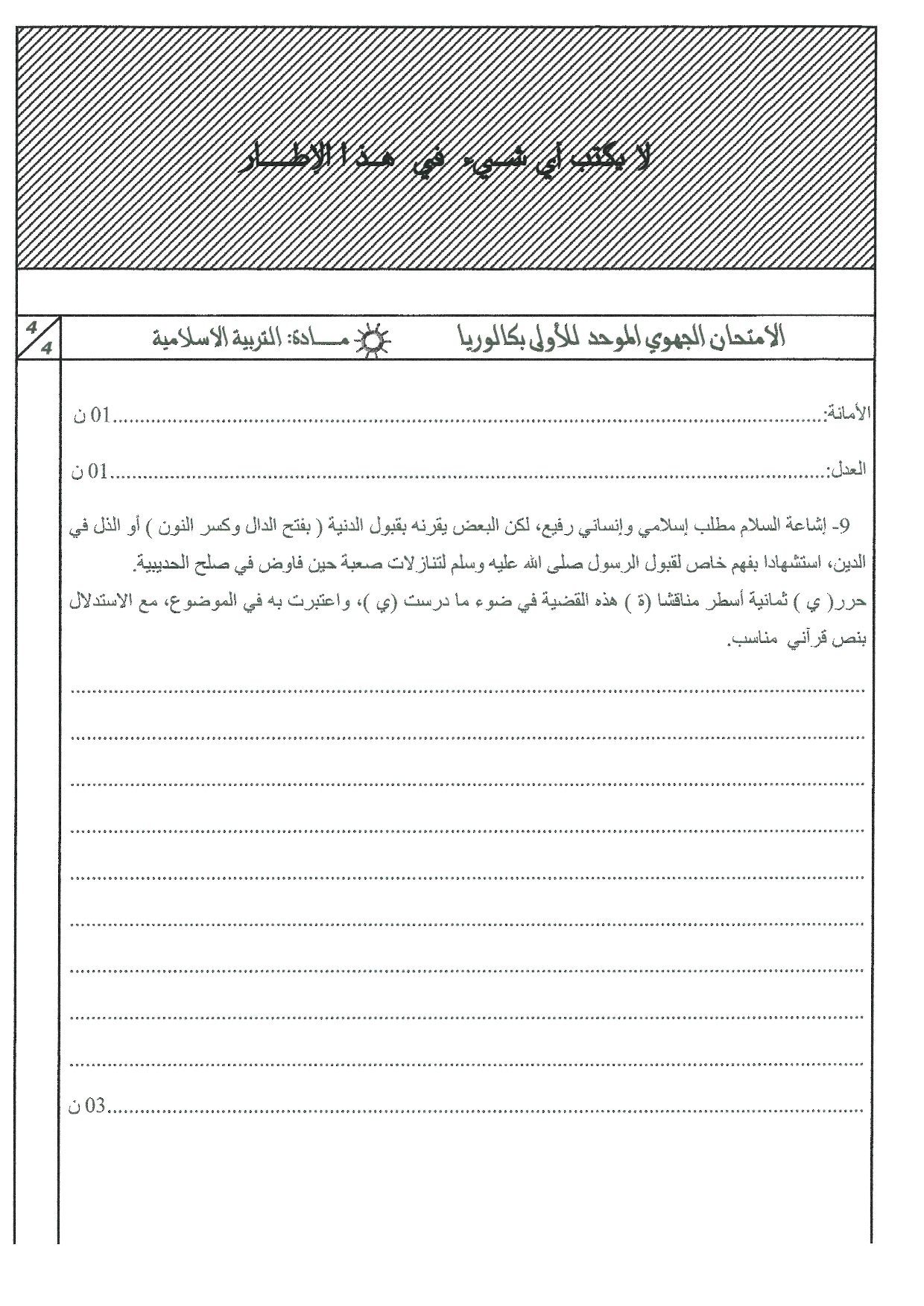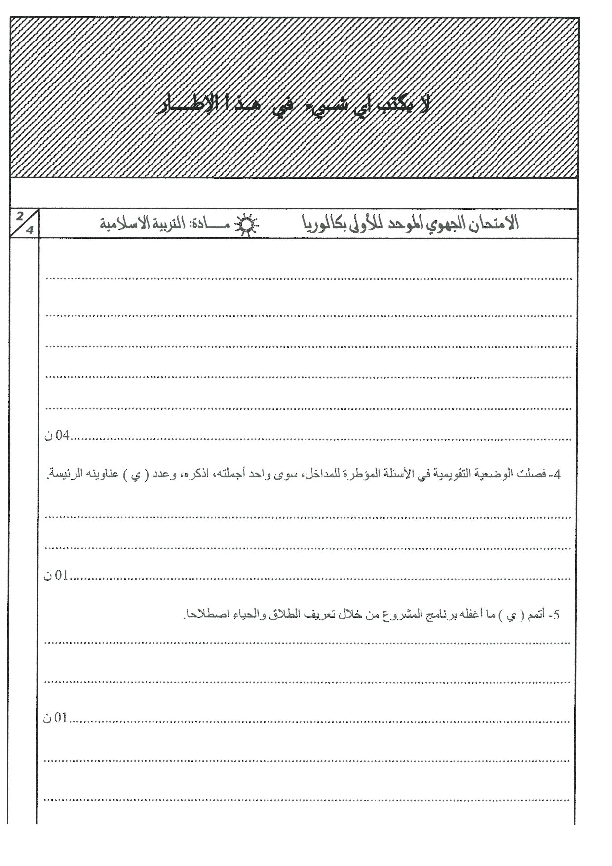 الامتحان الجهوي في التربية الإسلامية (د. العادية) - طنجة تطوان الحسيمة 2018 - الموضوع