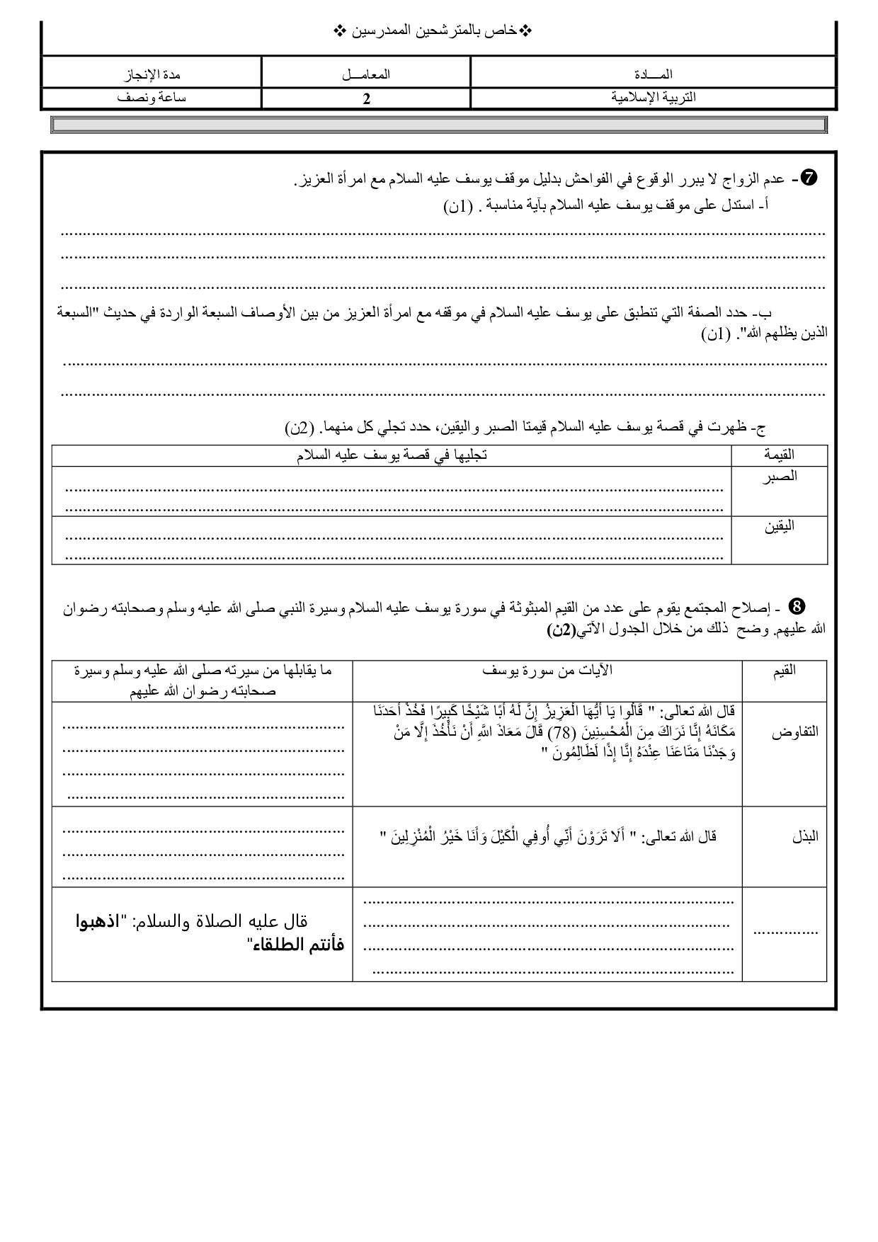 الامتحان الجهوي في التربية الإسلامية (د. الإستدراكية) - مراكش آسفي 2018 - الموضوع