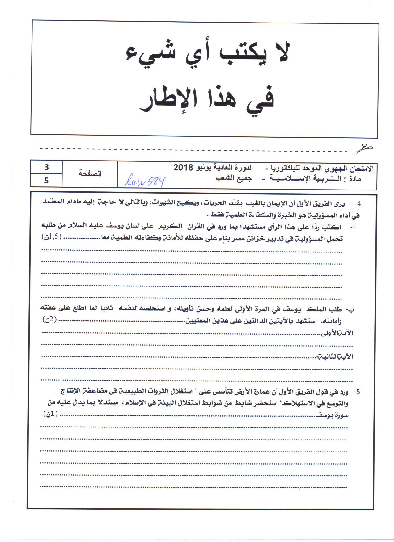 الامتحان الجهوي في التربية الإسلامية (د. العادية) - بني ملال خنيفرة 2018 - الموضوع