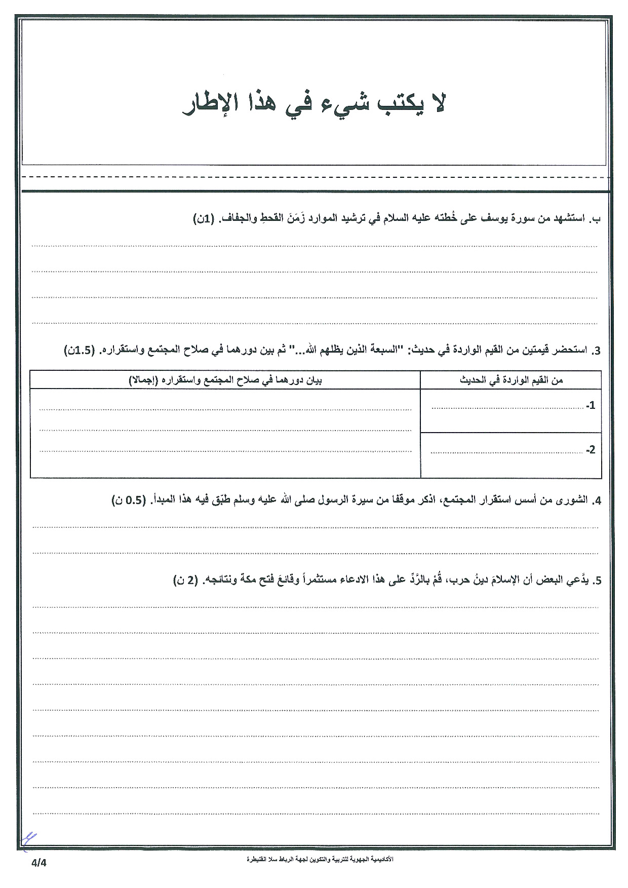 الامتحان الجهوي في التربية الإسلامية (د. العادية) - الرباط سلا القنيطرة 2018 - الموضوع