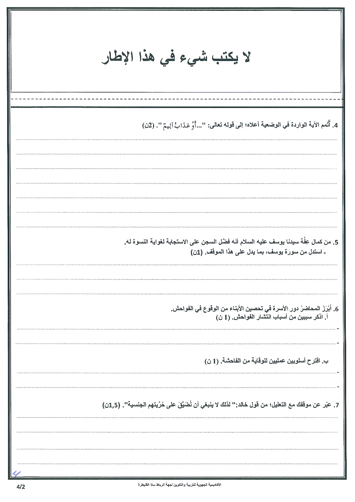 الامتحان الجهوي في التربية الإسلامية (د. العادية) - الرباط سلا القنيطرة 2018 - الموضوع