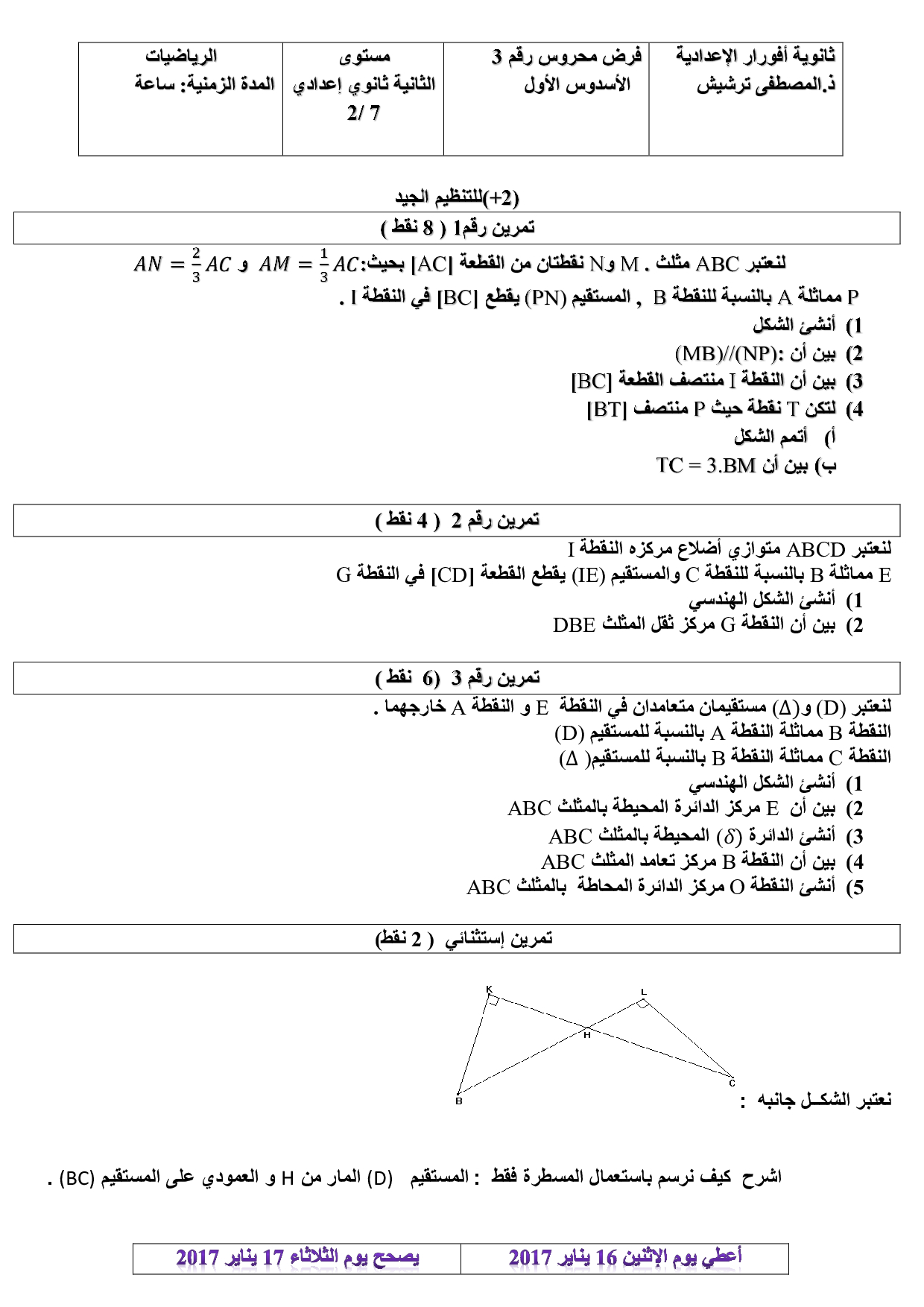 الفرض 3 نموذج 4 - الرياضيات ثانية إعدادي الدورة الأولى