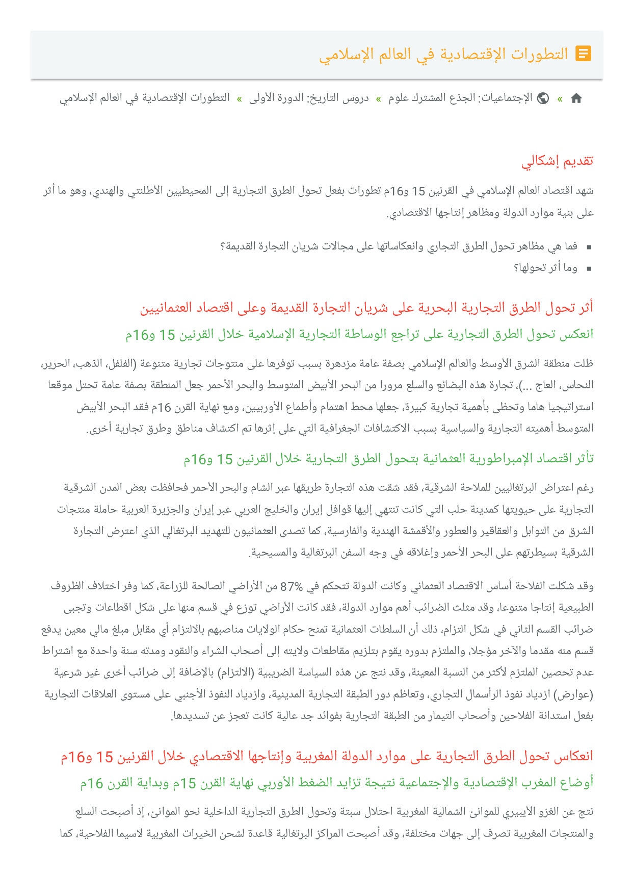 التطورات الإقتصادية في العالم الإسلامي