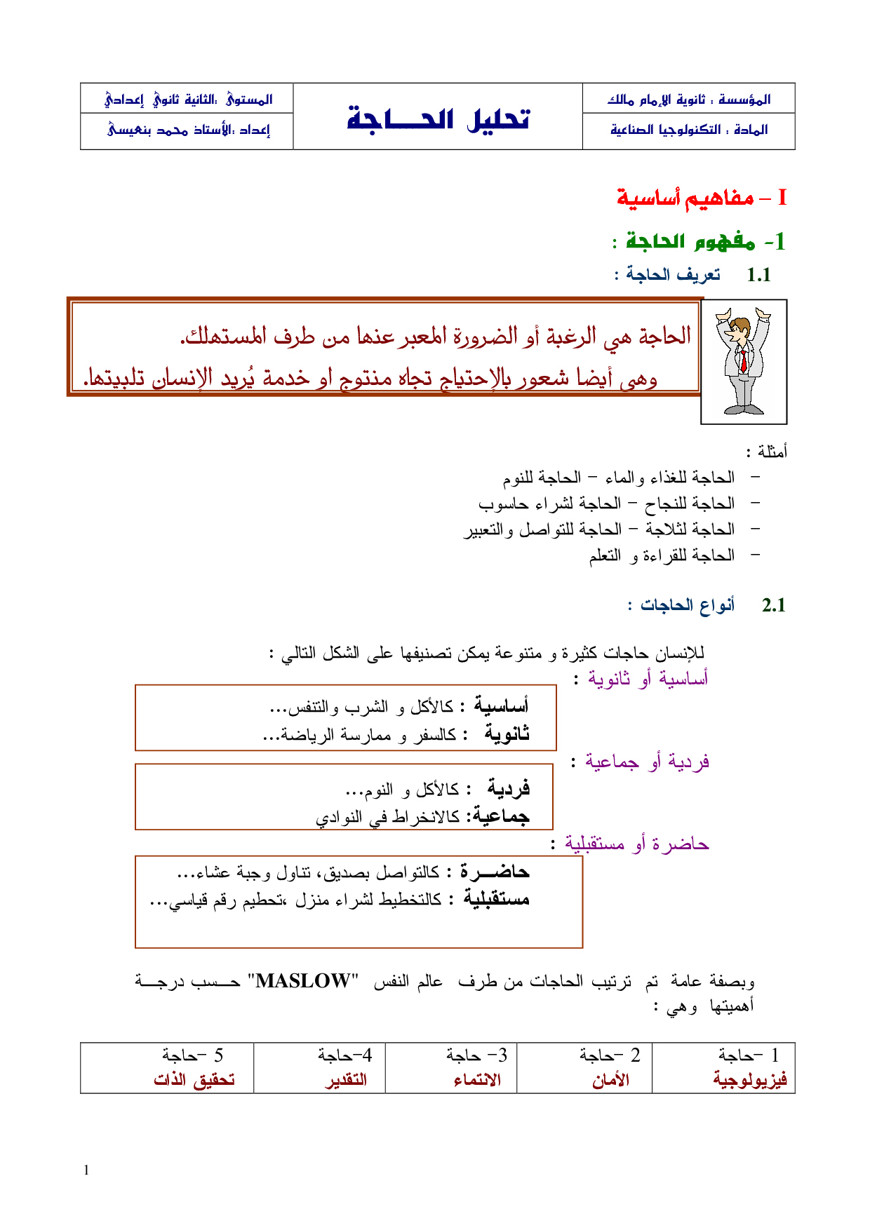 تحليل الحاجة - الدرس 2