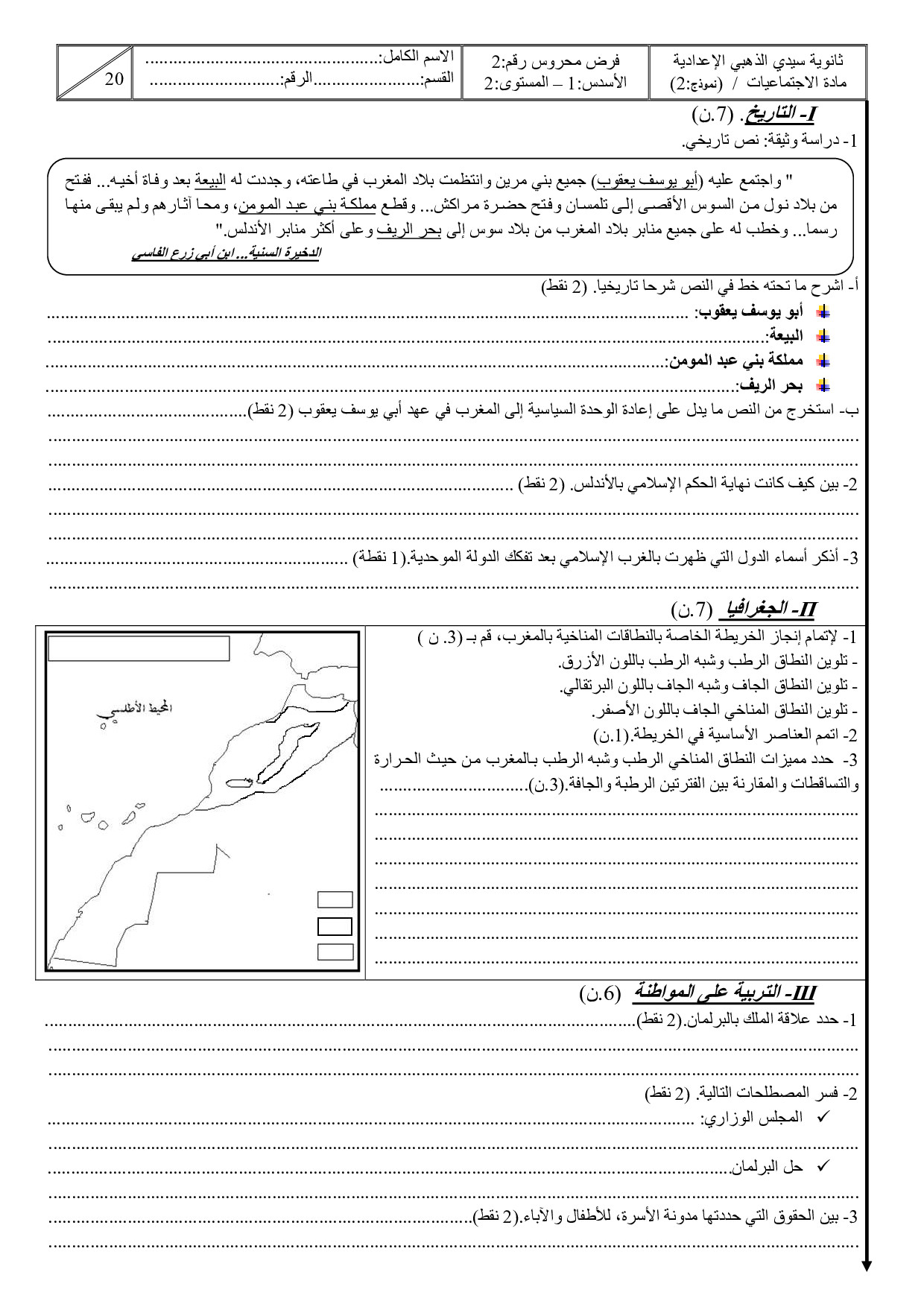 الفرض 2 نموذج 6 - الاجتماعيات ثانية إعدادي الدورة الأولى