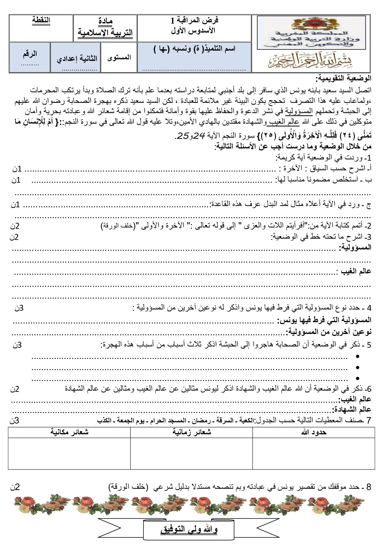 التربية الإسلامية: الثانية إعدادي