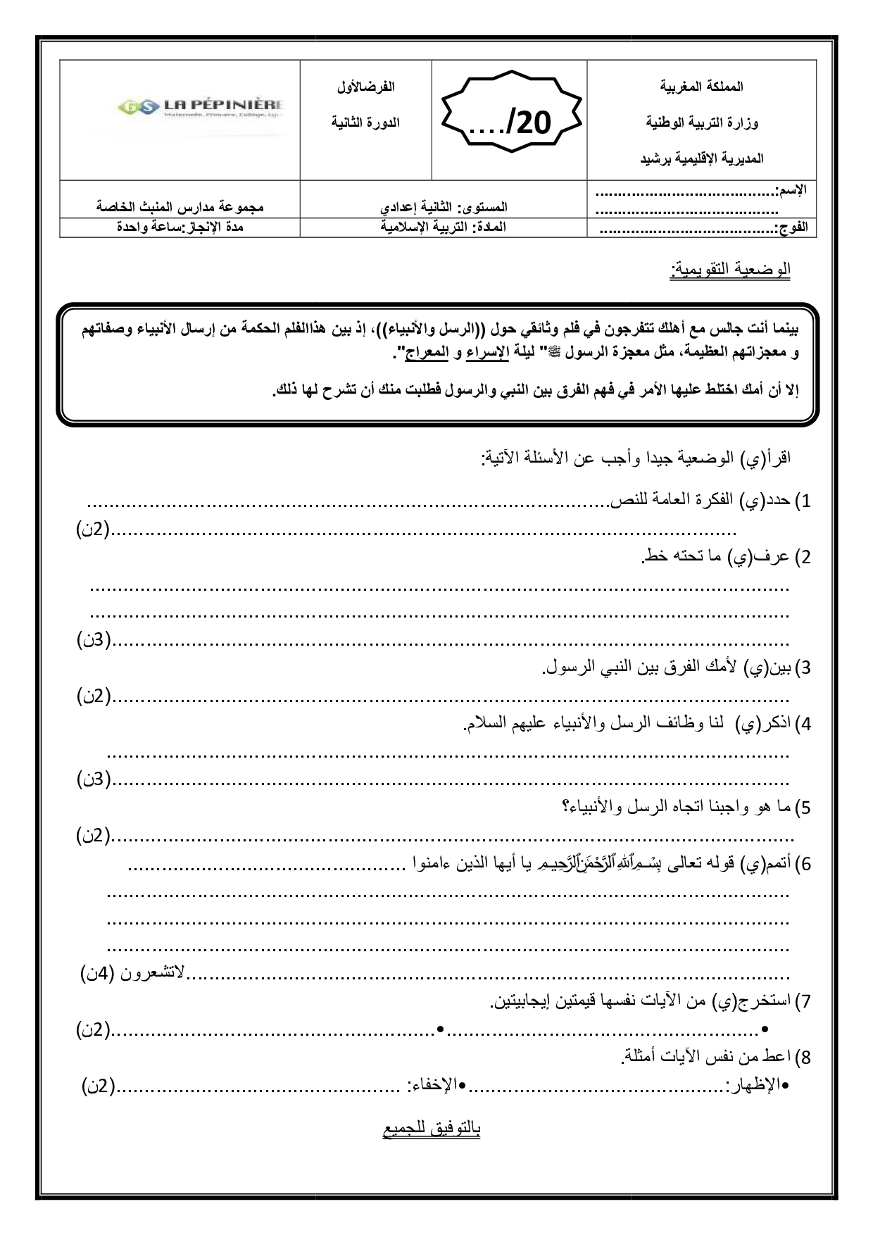 التربية الإسلامية: الثانية إعدادي