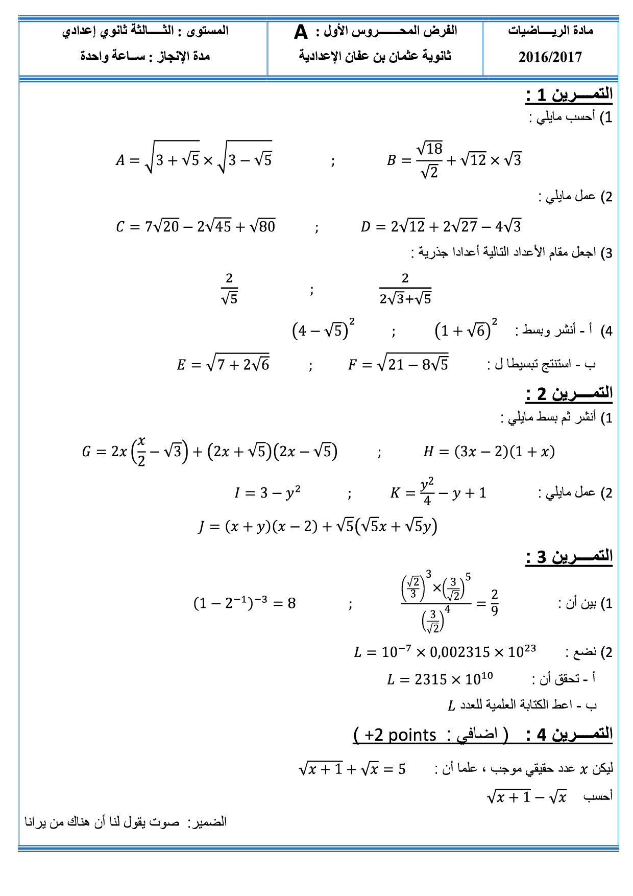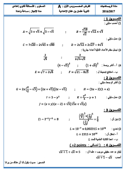 الفرض 1 نموذج 7 - الرياضيات ثالثة إعدادي الدورة الأولى