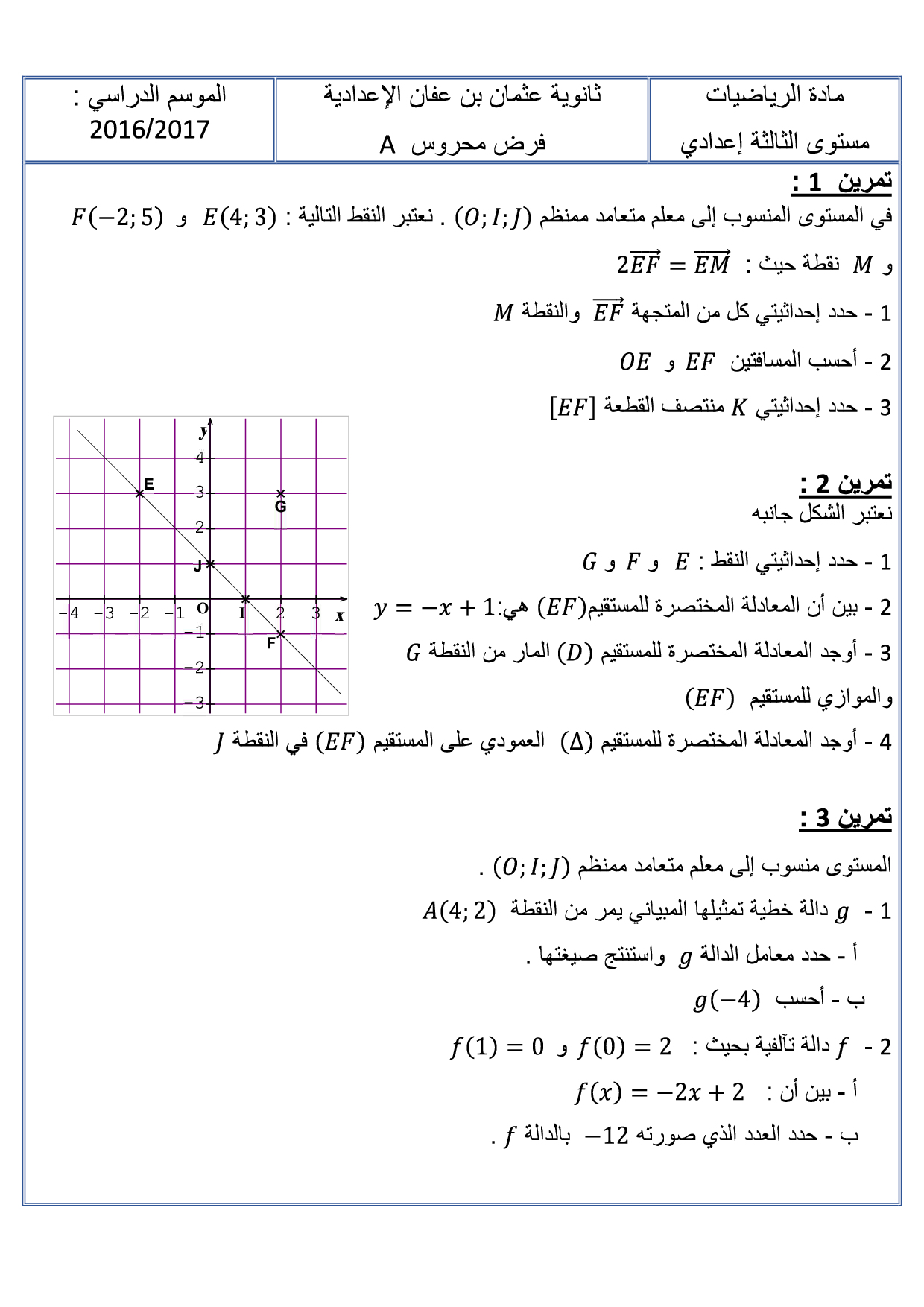 الرياضيات: الثالثة إعدادي