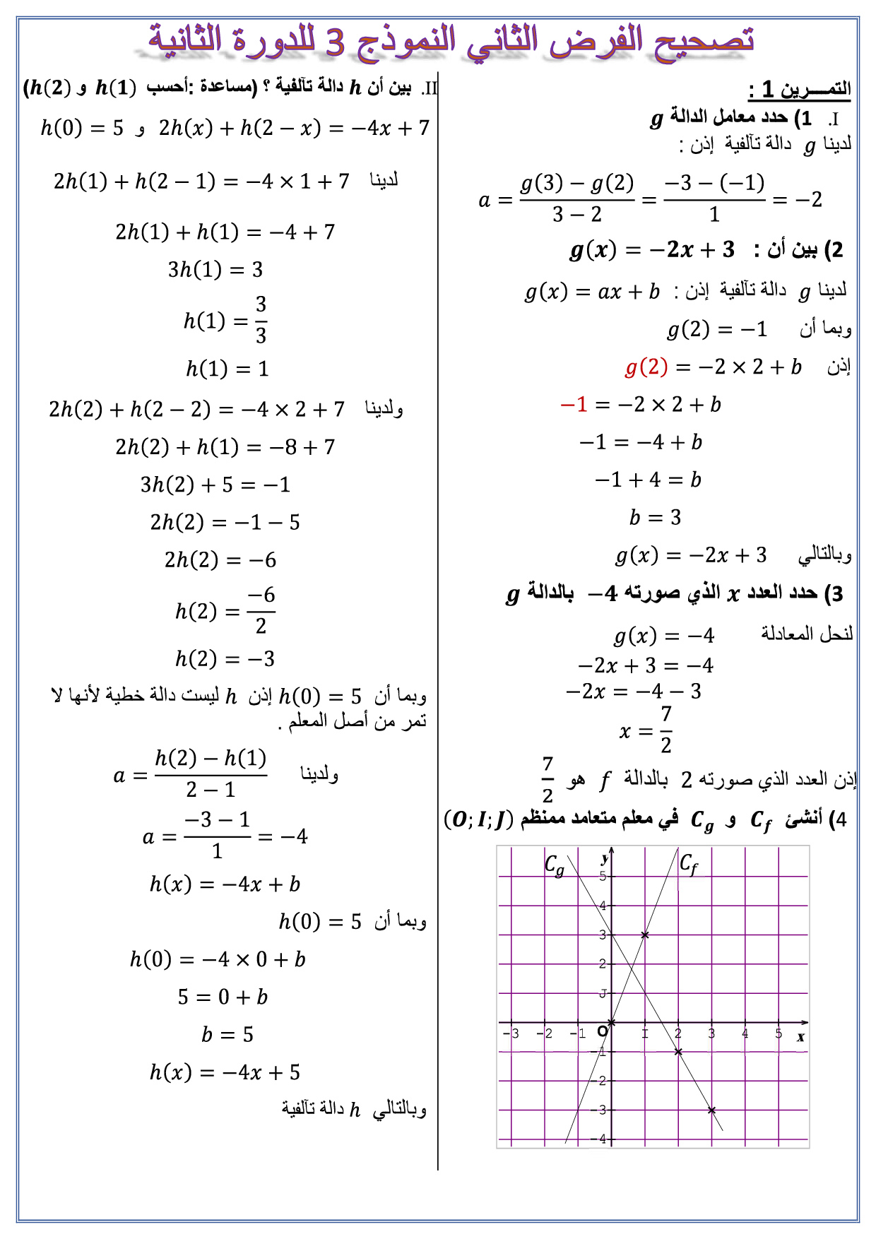 الفرض 2 نموذج 3 - الرياضيات ثالثة إعدادي الدورة الثانية (التصحيح)