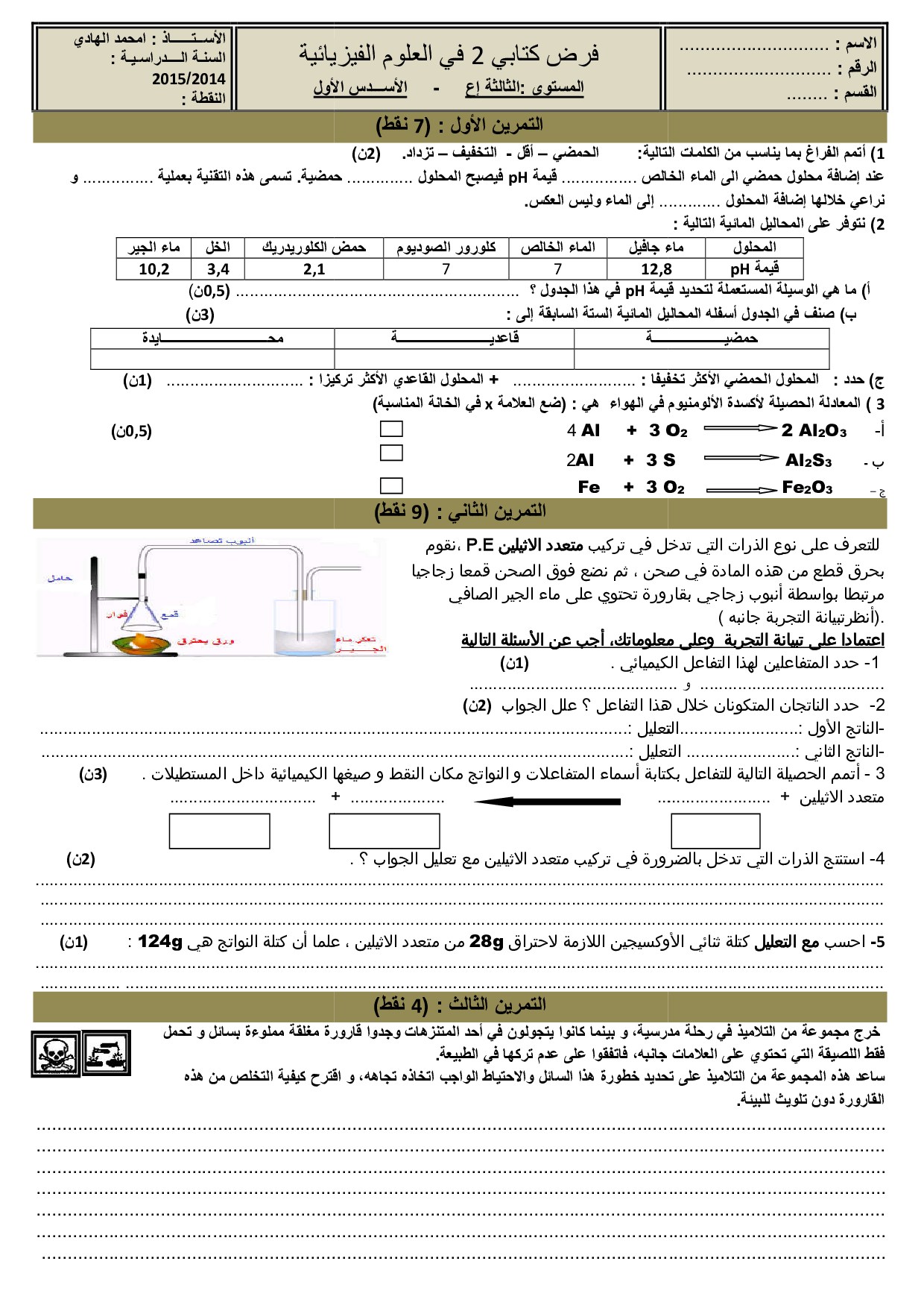 الفيزياء والكيمياء: الثالثة إعدادي