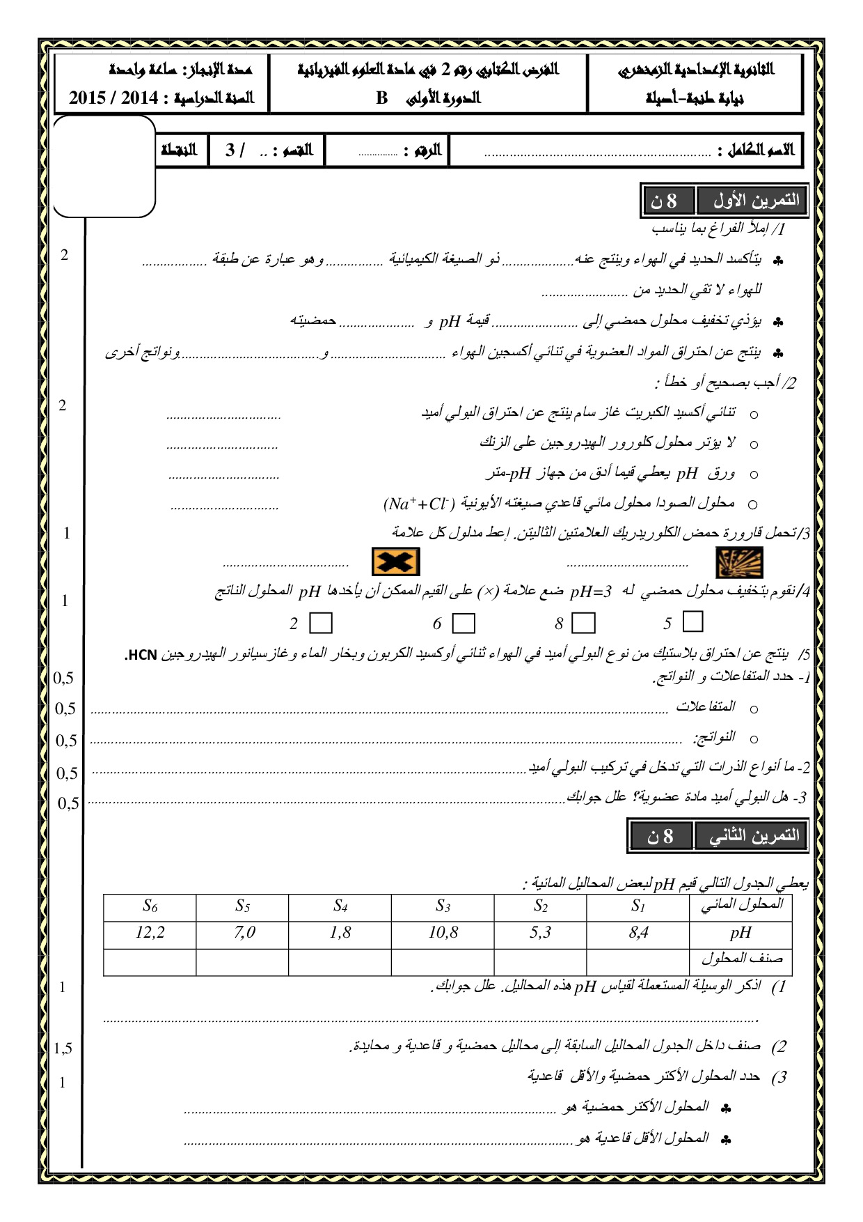 الفرض 2 نموذج 13 - الفيزياء والكيمياء ثالثة إعدادي الدورة الأولى
