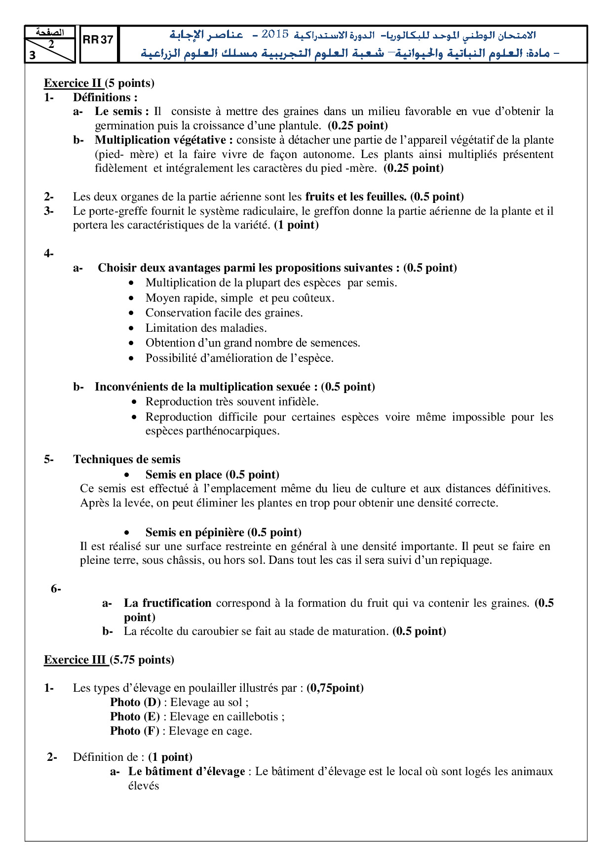 Examen Sciences Végétales et Animales 2015 Session Rattrapage - Corrigé