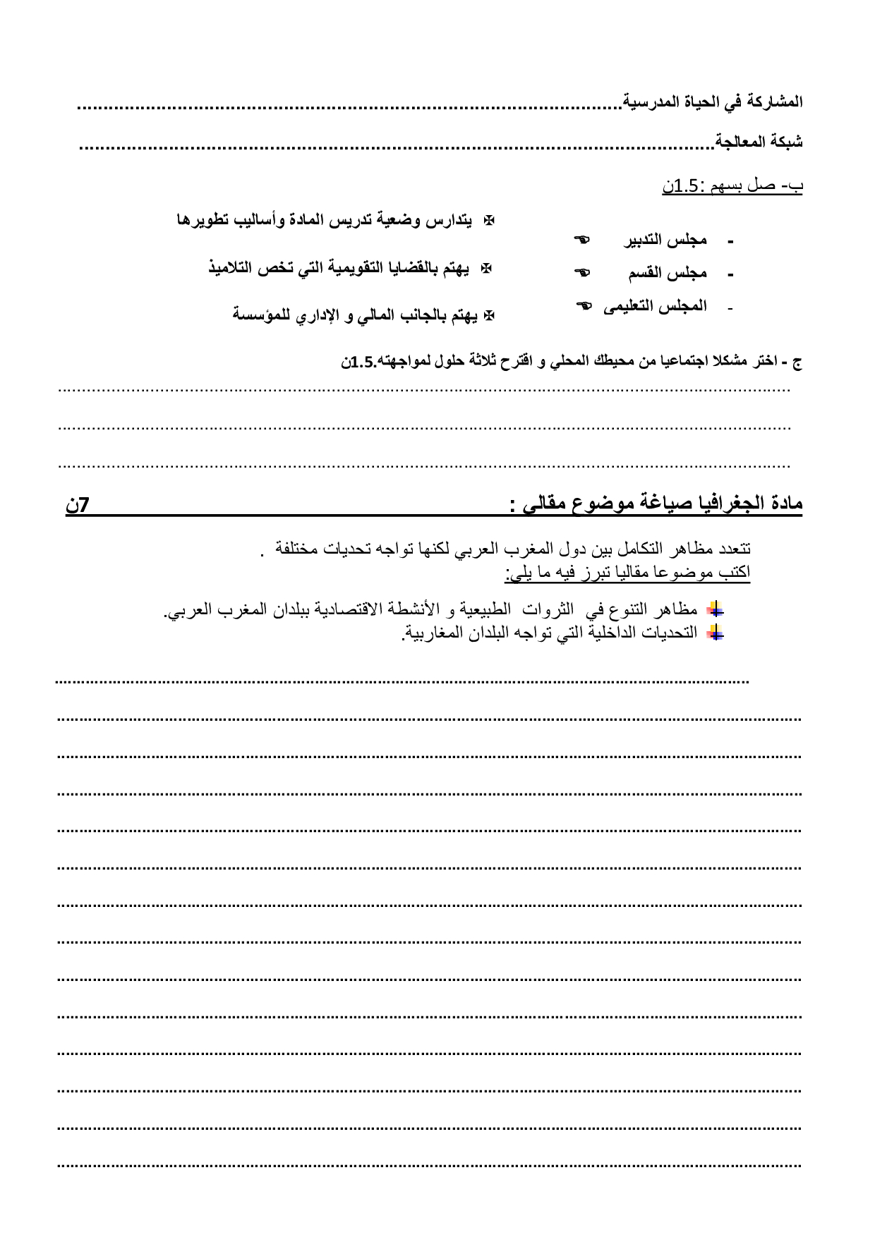 الفرض 1 نموذج 11 - التاريخ والجغرافيا ثالثة إعدادي الدورة الأولى