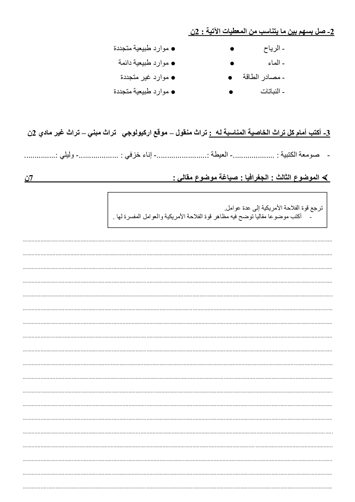الفرض 1 نموذج 11 - التاريخ والجغرافيا ثالثة إعدادي الدورة الثانية