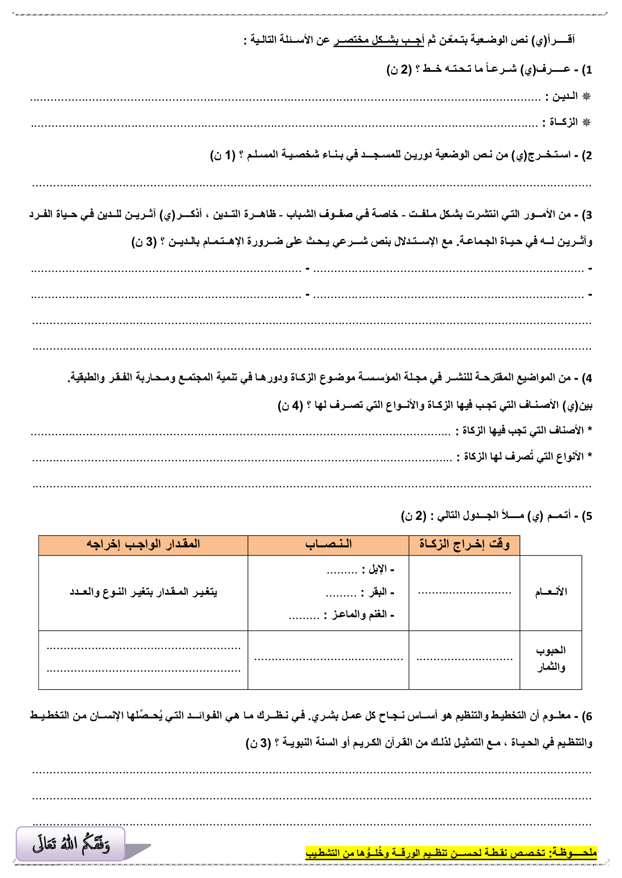 الفرض 2 نموذج 6 - التربية الإسلامية ثالثة إعدادي الدورة الأولى