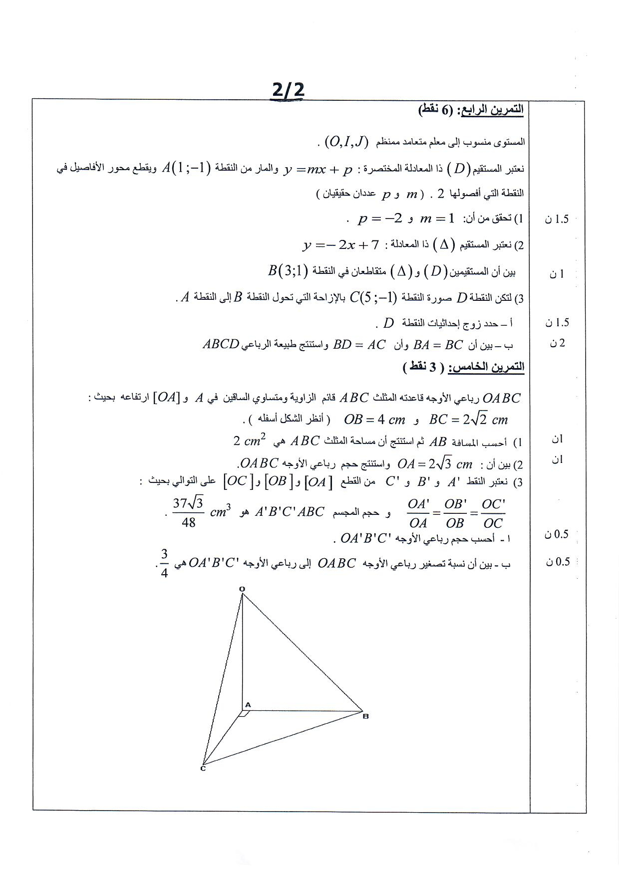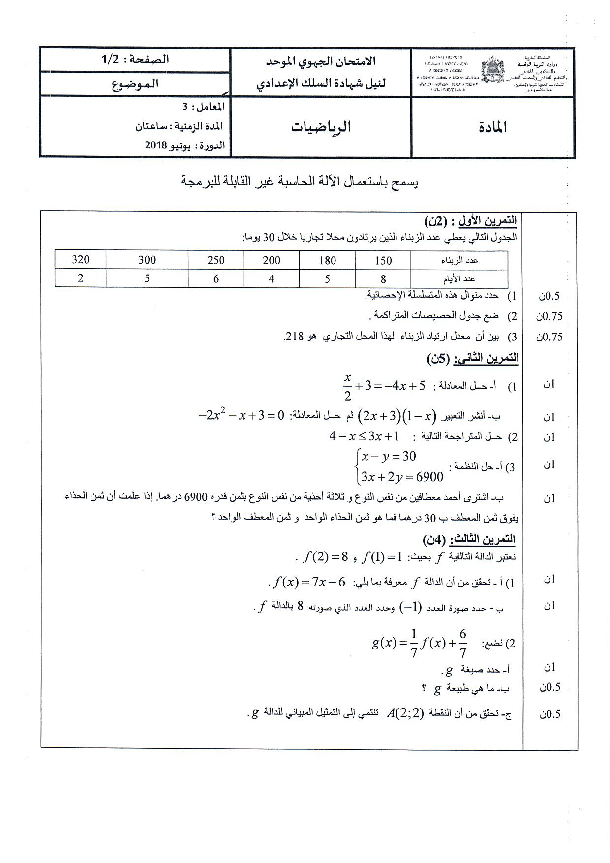 الامتحان الجهوي للثالثة إعدادي (الرياضيات) - كلميم واد نون 2018 - الموضوع