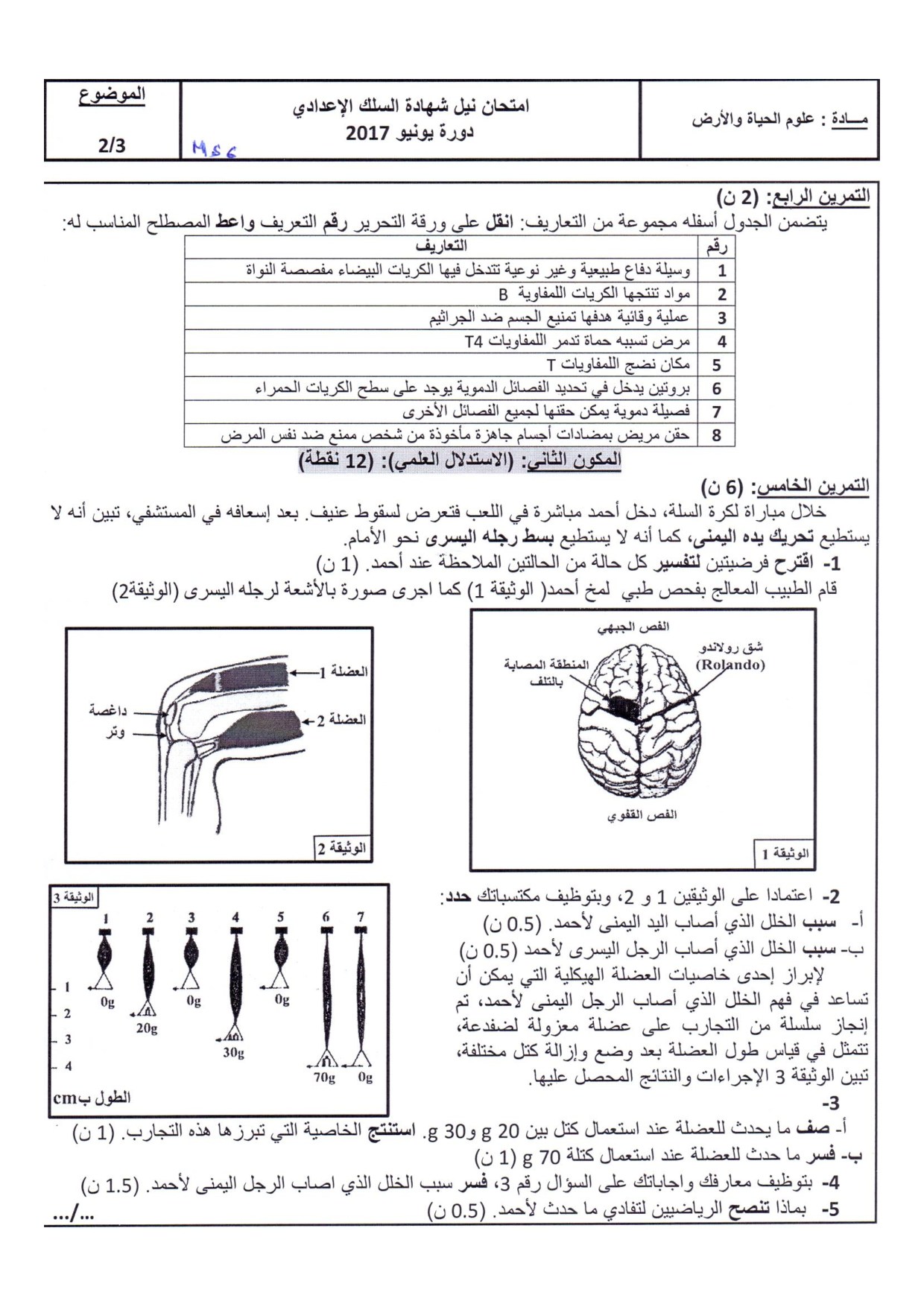 الامتحان الجهوي للثالثة إعدادي (علوم الحياة والأرض) - بني ملال خنيفرة 2017 - الموضوع