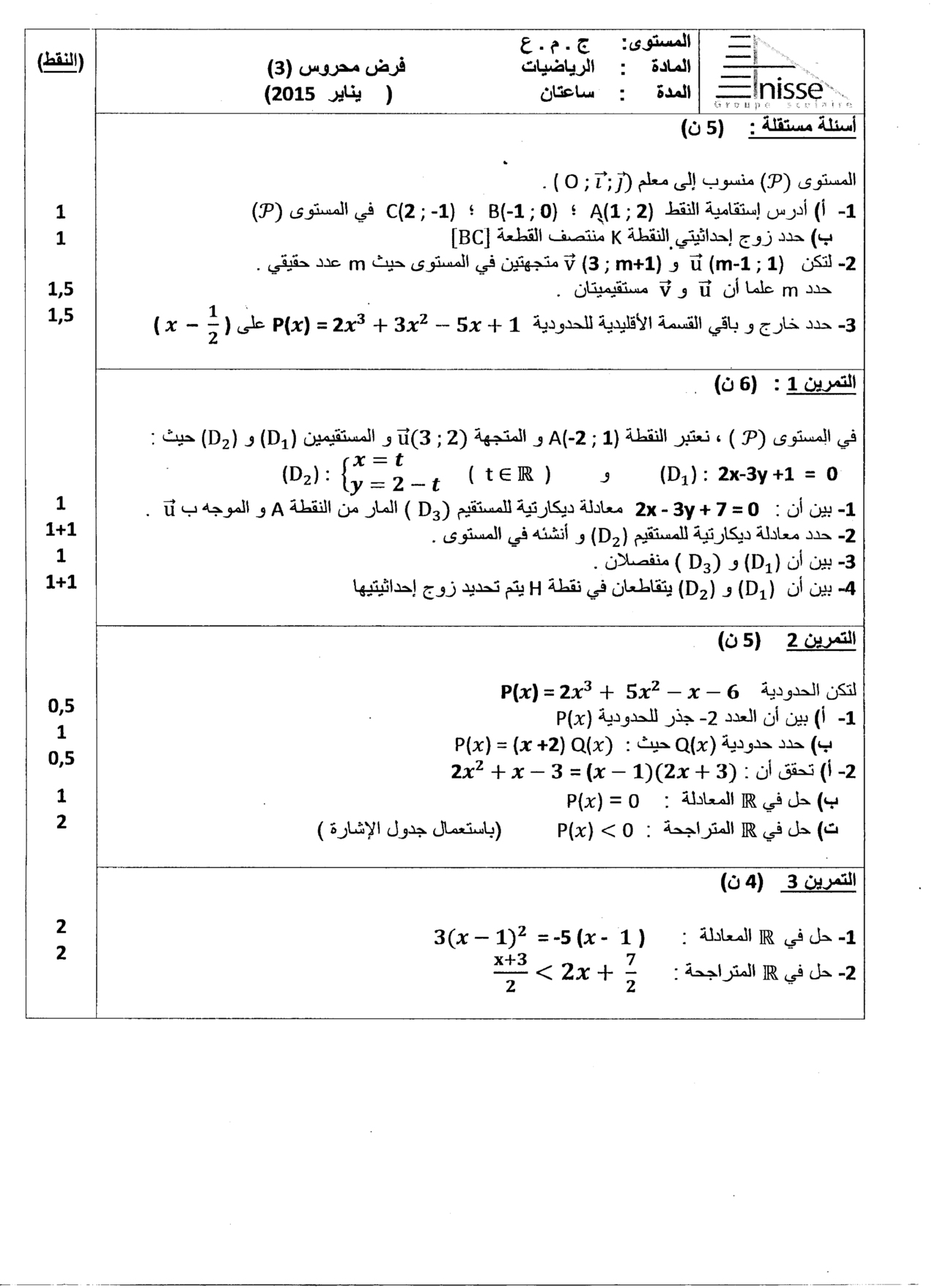 الفرض 3 نموذج 4 - الرياضيات جذع مشترك الدورة الأولى