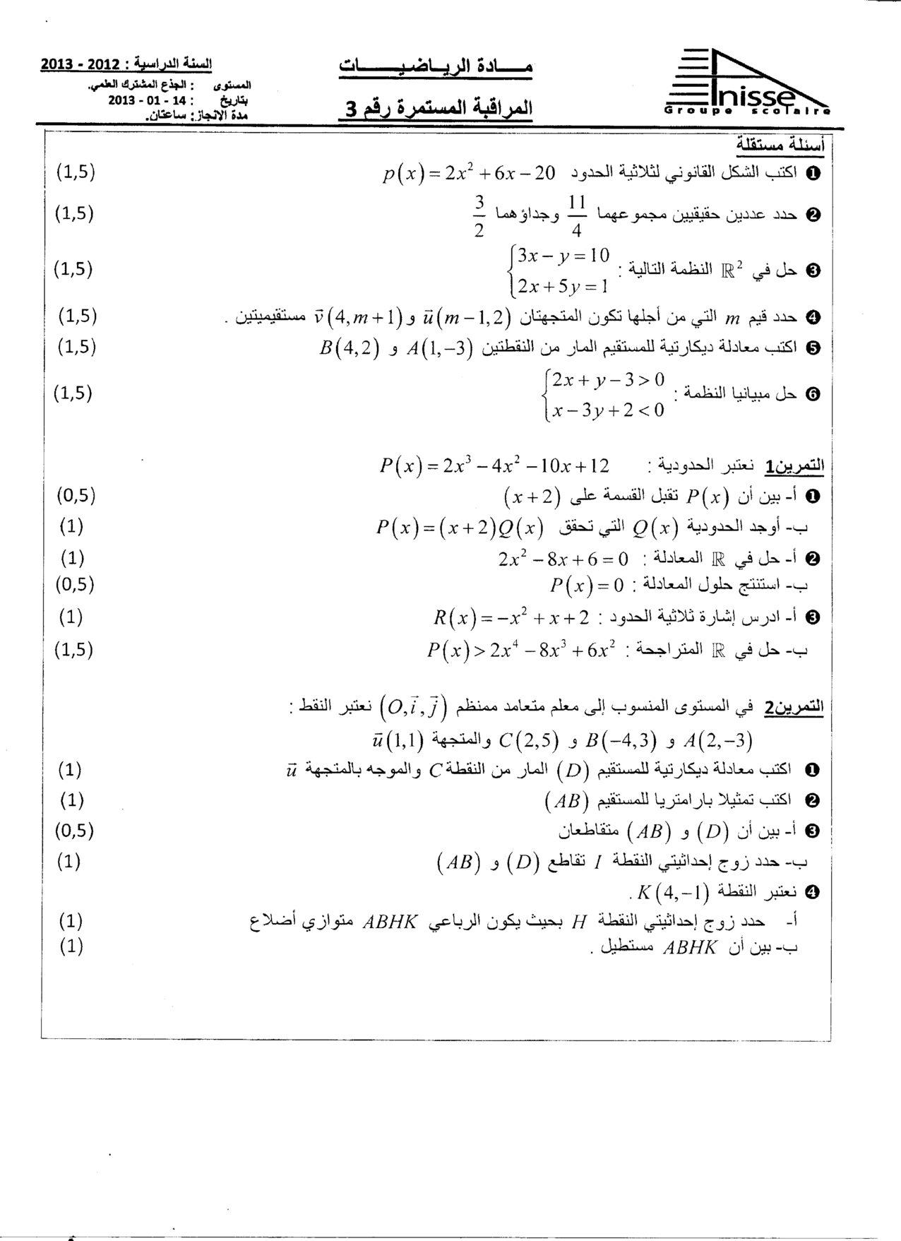 الفرض 3 نموذج 6 - الرياضيات جذع مشترك الدورة الأولى