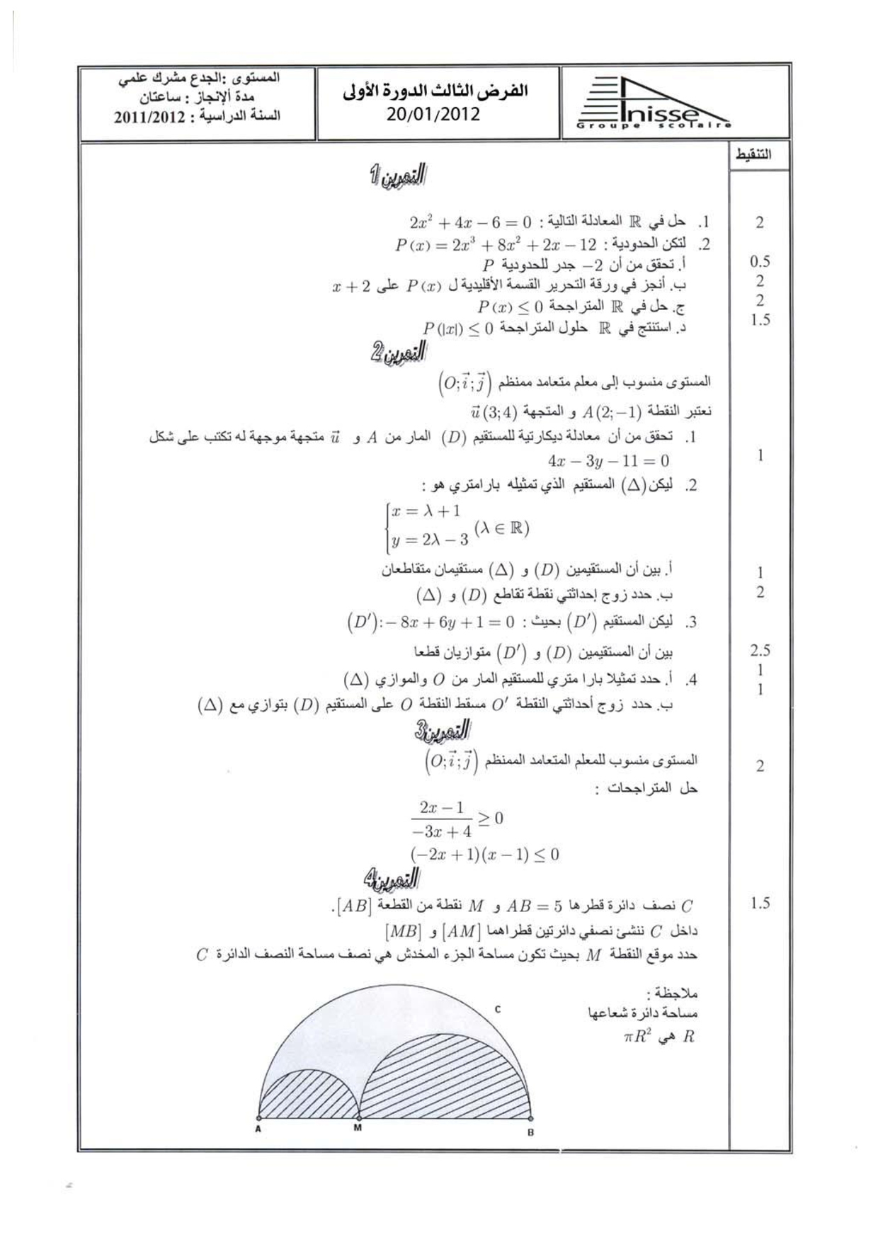 الفرض 3 نموذج 8 - الرياضيات جذع مشترك الدورة الأولى