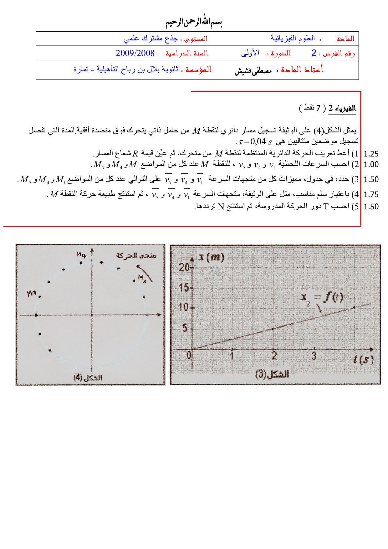 الفرض 2 نموذج 9 - الفيزياء والكيمياء جذع مشترك الدورة الأولى
