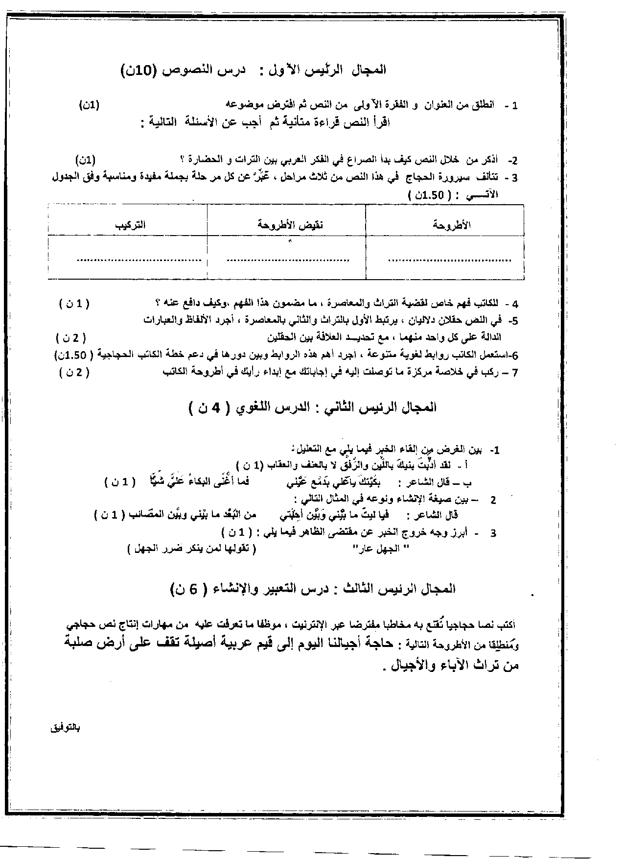 الفرض 2 نموذج 2 - اللغة العربية جذع مشترك الدورة الأولى