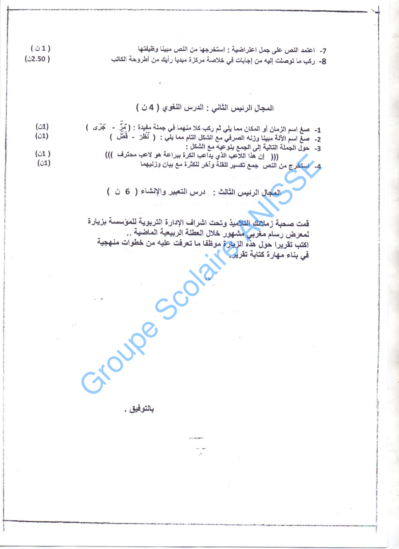 الفرض 2 نموذج 3 - اللغة العربية جذع مشترك الدورة الثانية