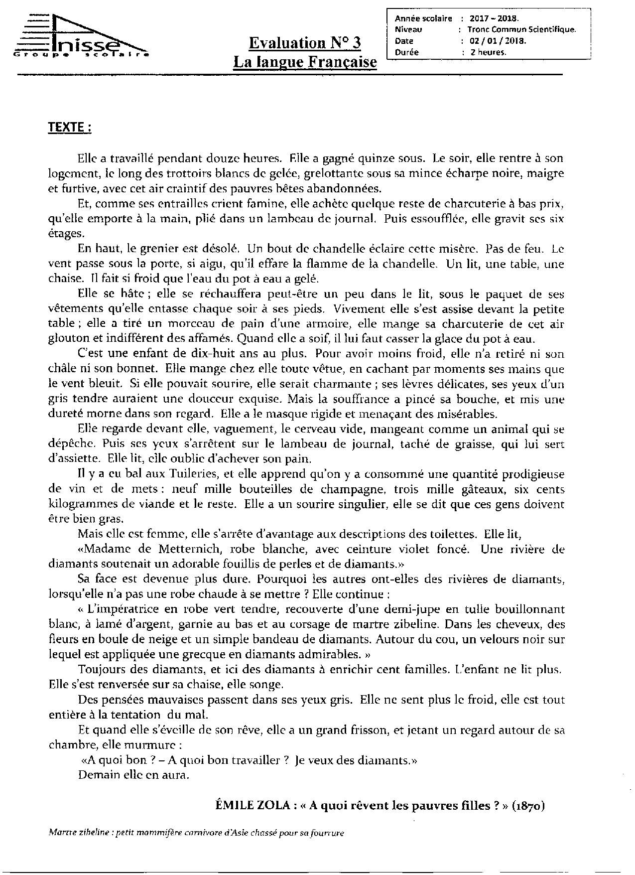 Devoir 3 Modèle 2 - Français Tronc commun Semestre 1