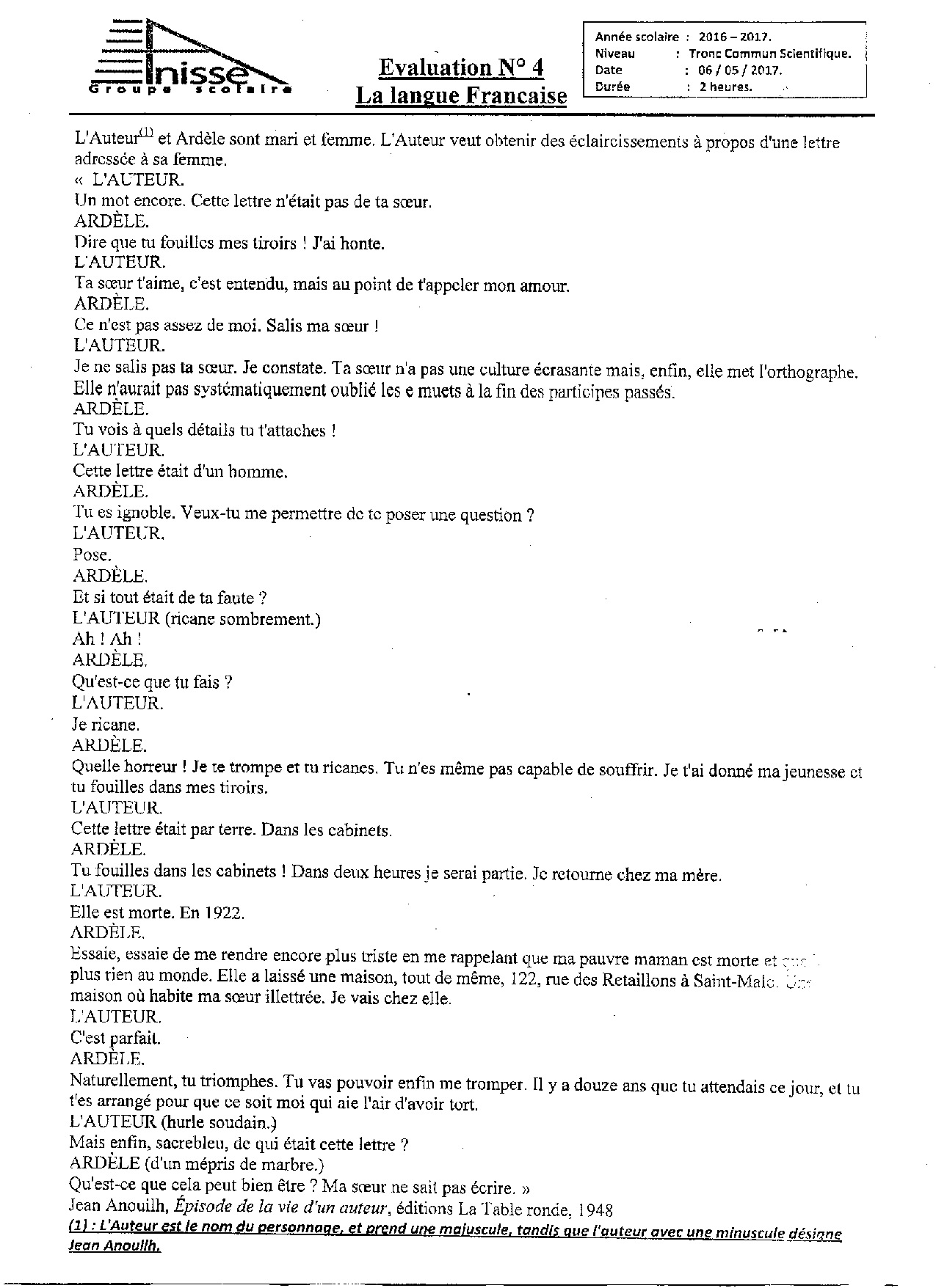 Devoir 3 Modèle 3 - Français Tronc commun Semestre 2
