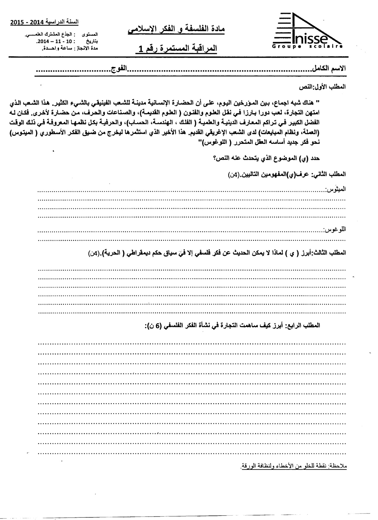 الفرض 1 نموذج 6 - الفلسفة جذع مشترك الدورة الأولى
