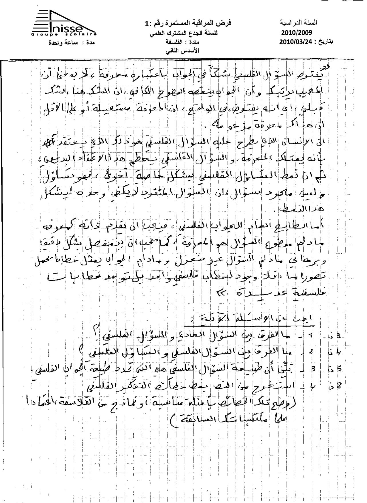 الفرض 1 نموذج 3 - الفلسفة جذع مشترك الدورة الثانية