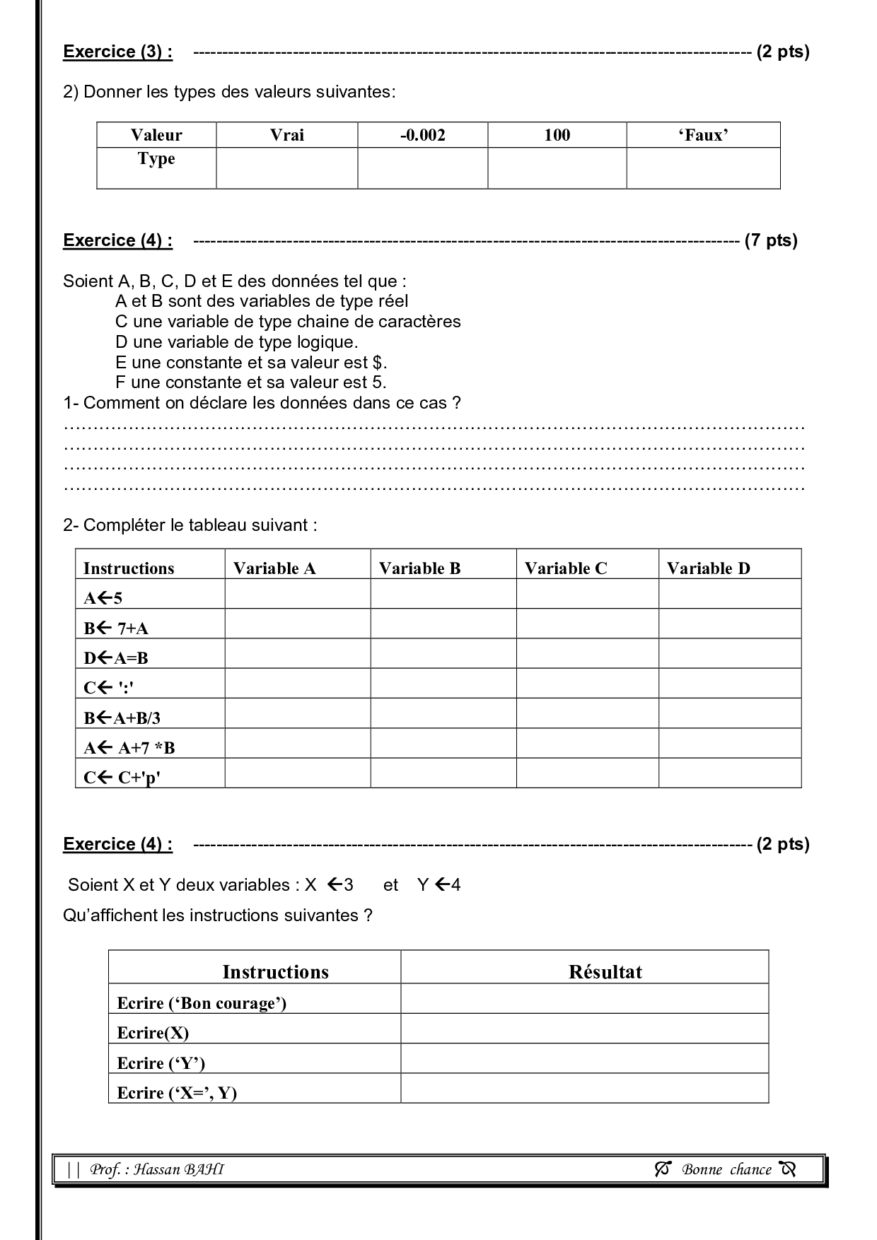 Devoir 1 Modèle 2 - Informatique Tronc commun Semestre 2
