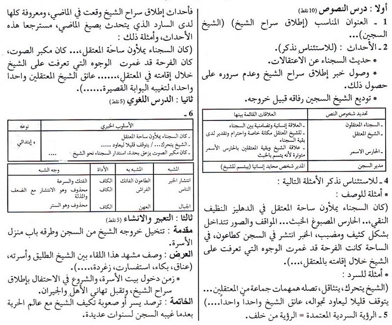 الفرض 1 نموذج 5 - اللغة العربية جذع مشترك أدبي الدورة الثانية (التصحيح)