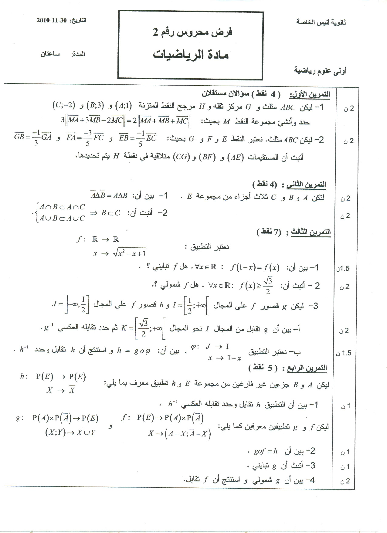 الفرض 2 نموذج 9 - الرياضيات أولى باك علوم رياضية الدورة الأولى
