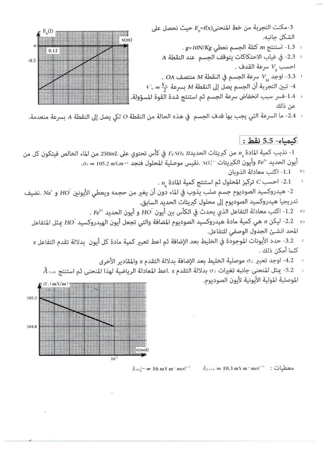 الفرض 2 نموذج 9 - الفيزياء والكيمياء أولى باك علوم رياضية الدورة الأولى