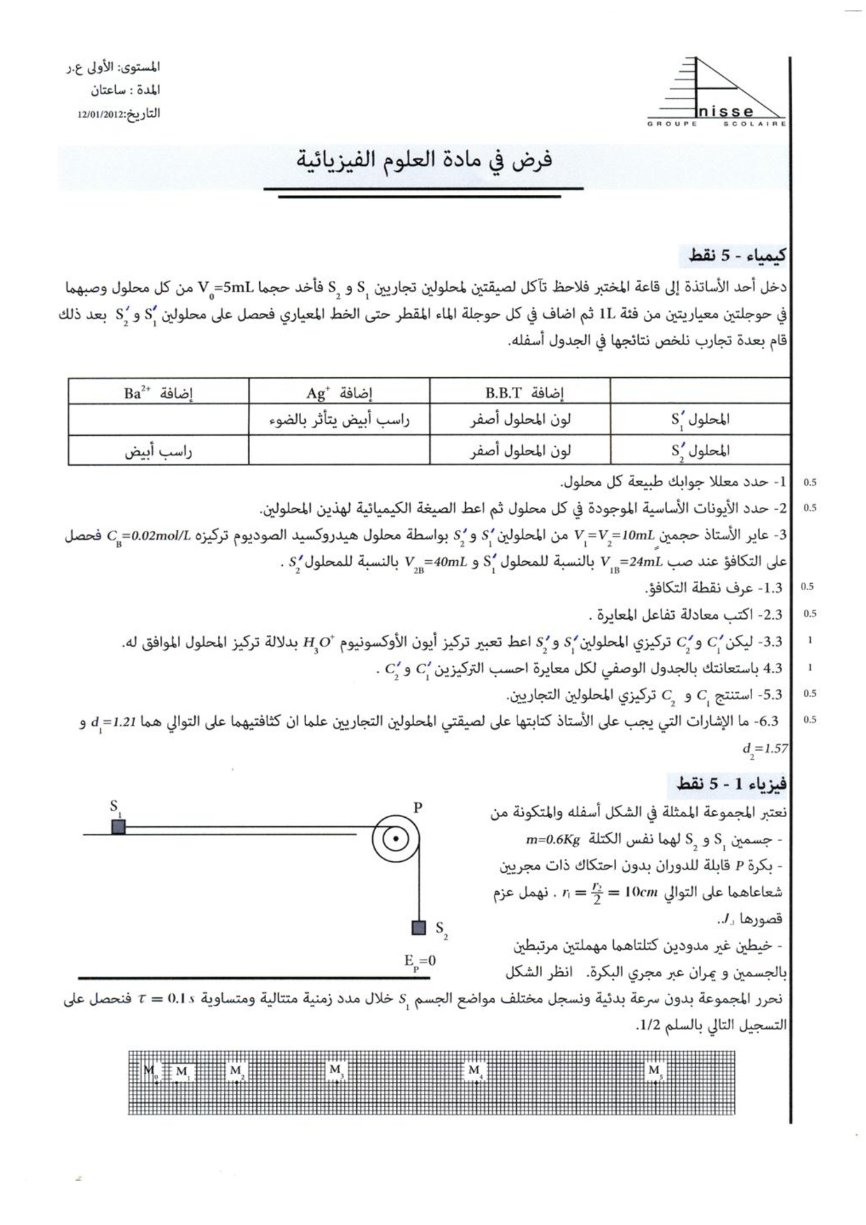الفيزياء والكيمياء: الأولى باك علوم رياضية